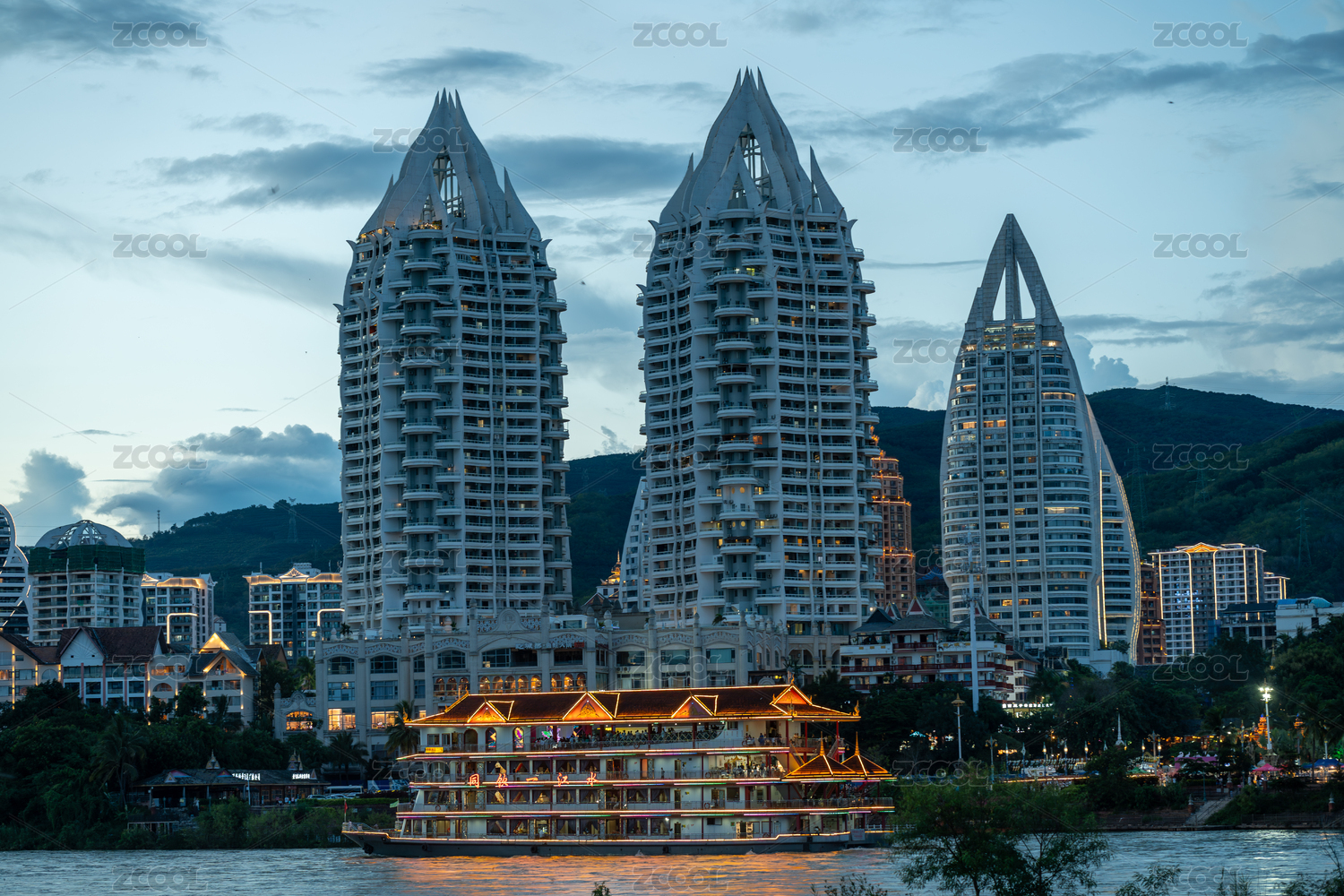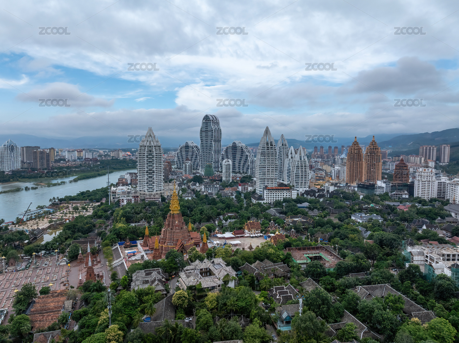 中国云南省景洪市澜沧江外滩告庄高楼建筑