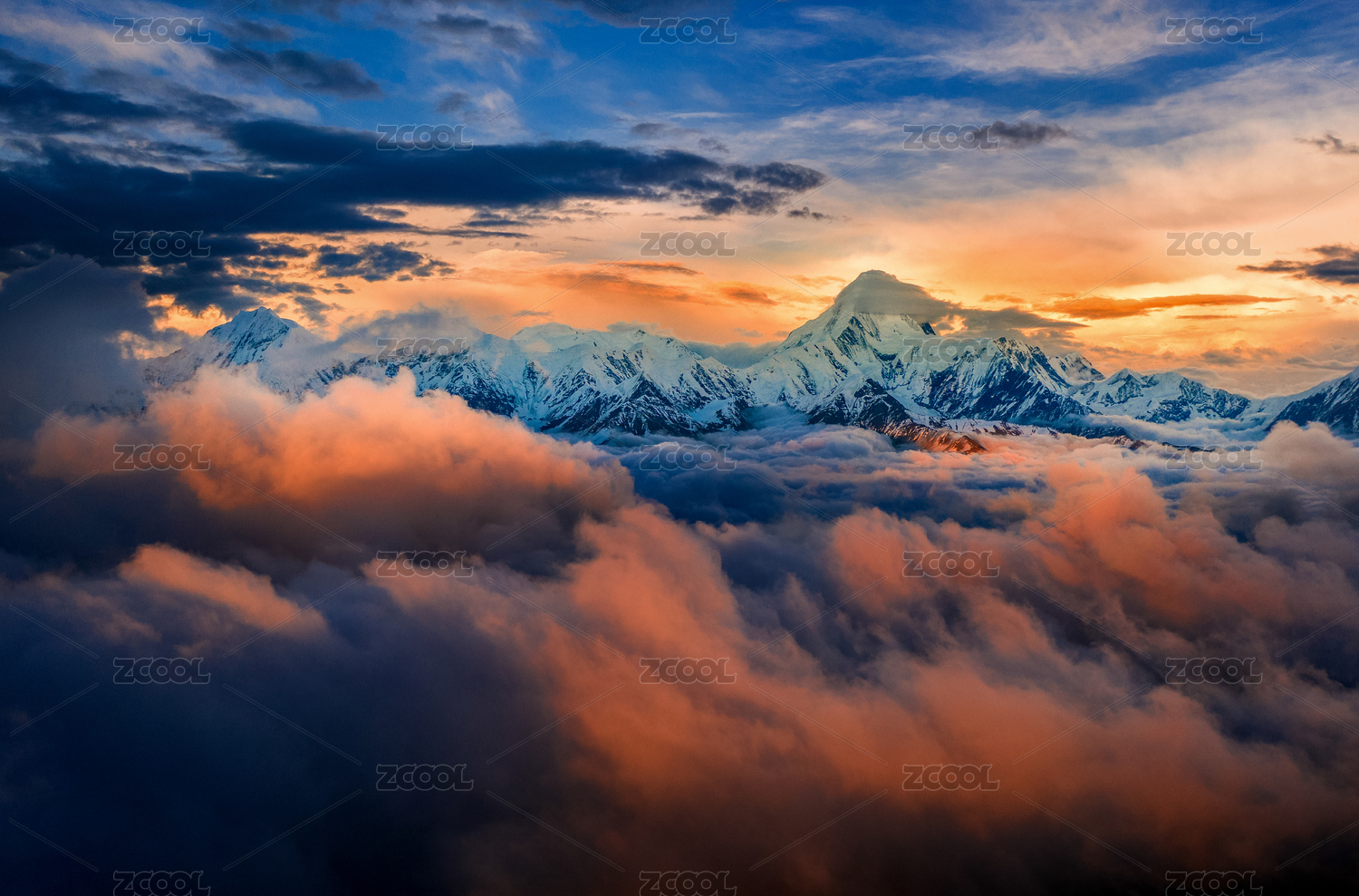航拍中国四川川西甘孜州贡嘎雪山夕阳云海