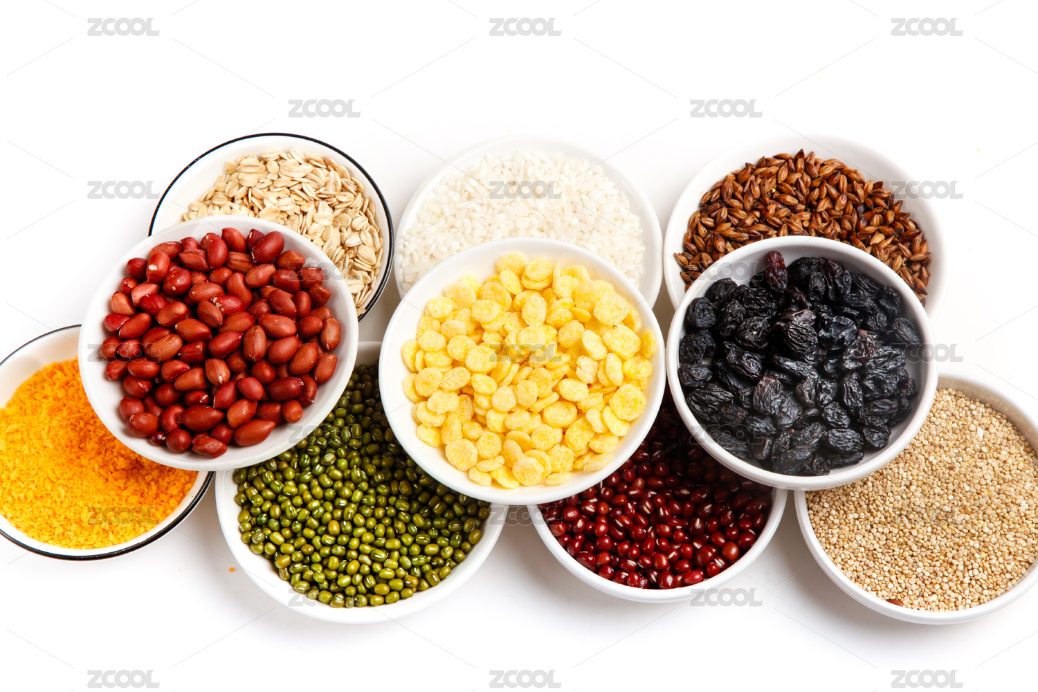白底上的五谷食材
