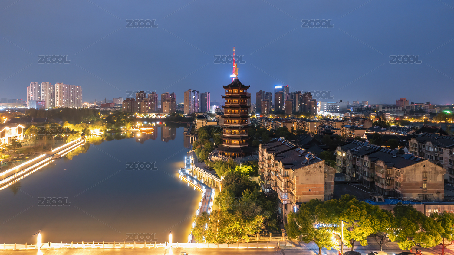 平湖东湖景区 报本禅寺 夜晚