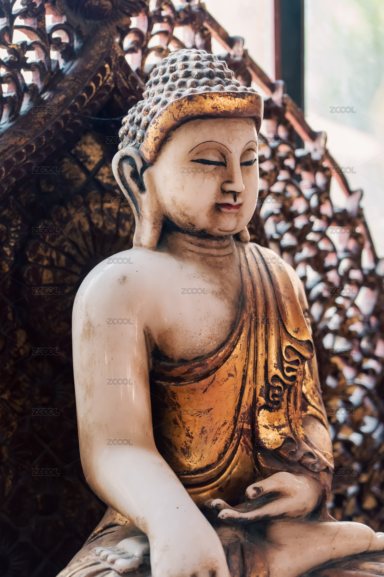 角落斜日照佛像