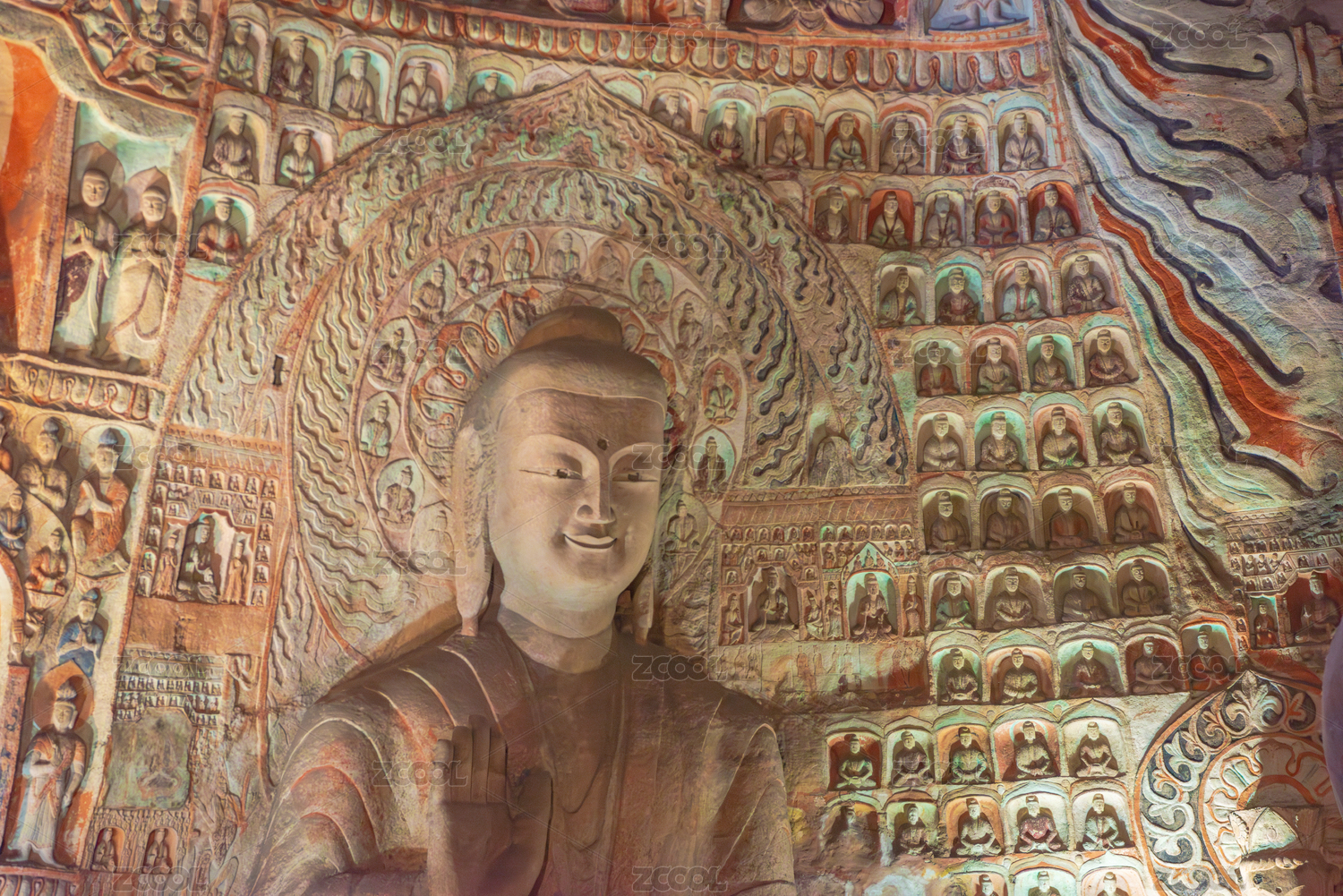 中国河南洛阳龙门石窟龙门西山南部山腰奉先寺彩色卢舍那大佛