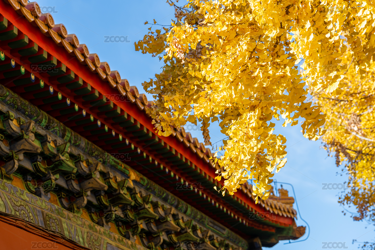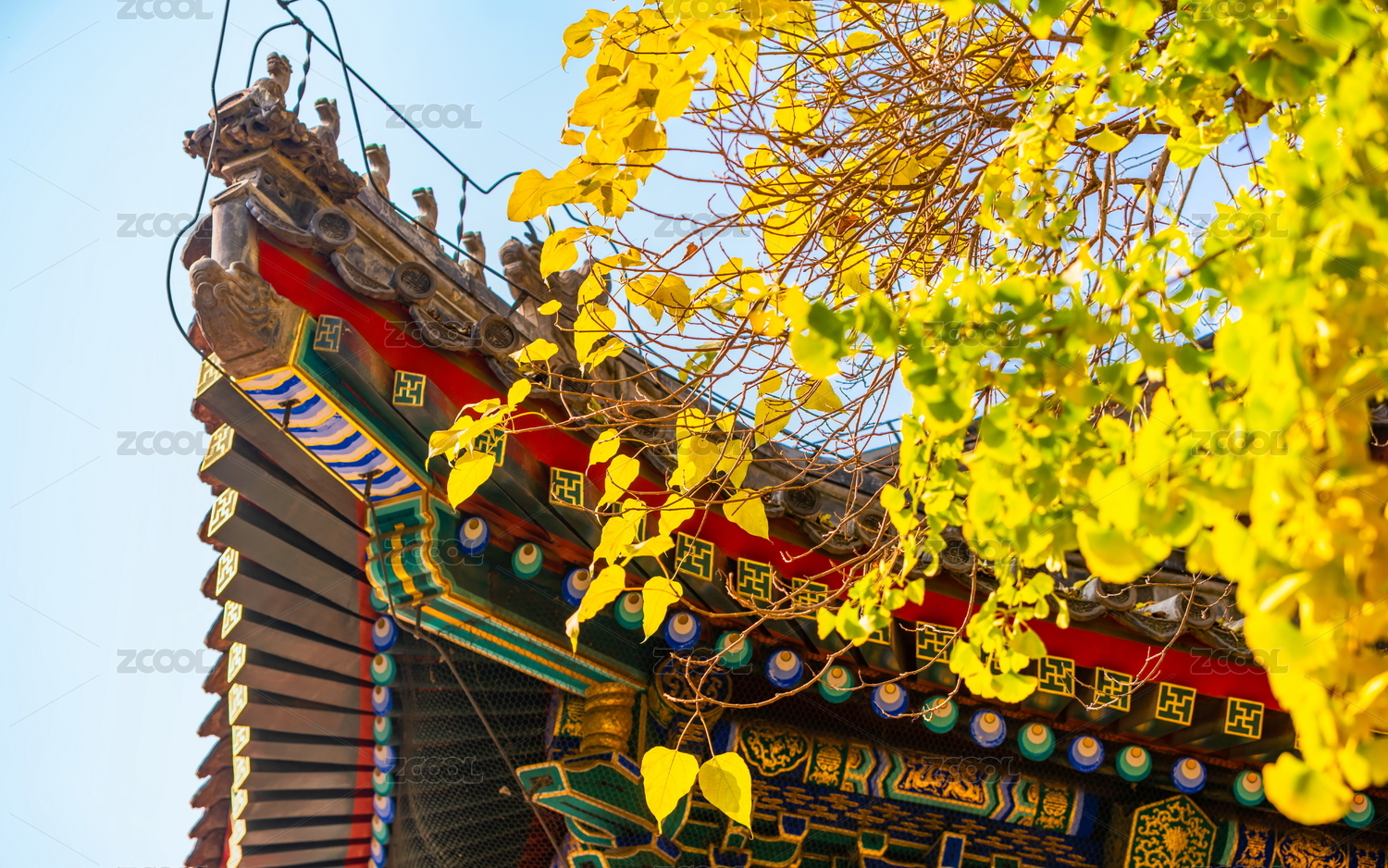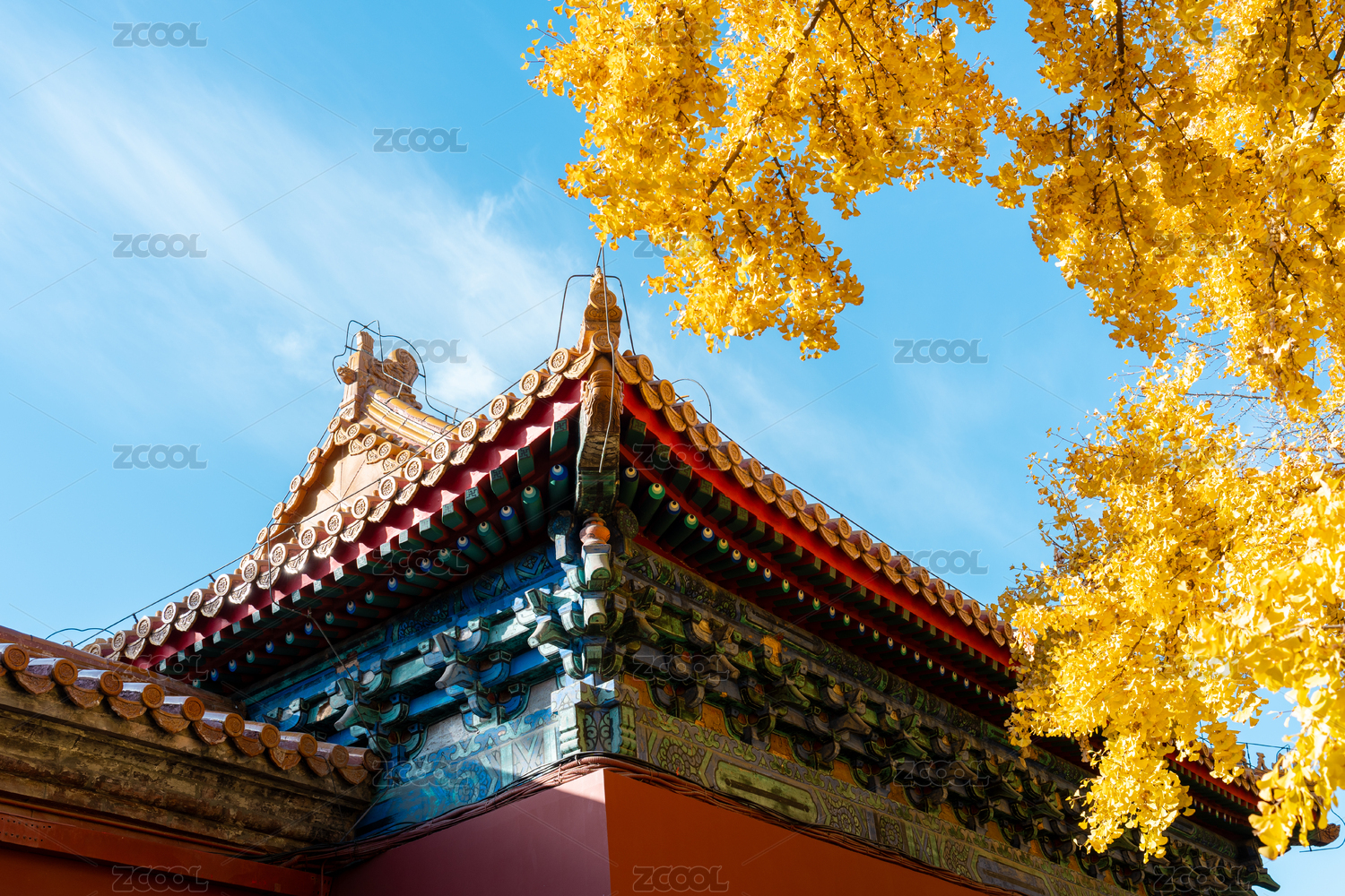 秋天北京潘家园的龙潭公园的古宫殿建筑