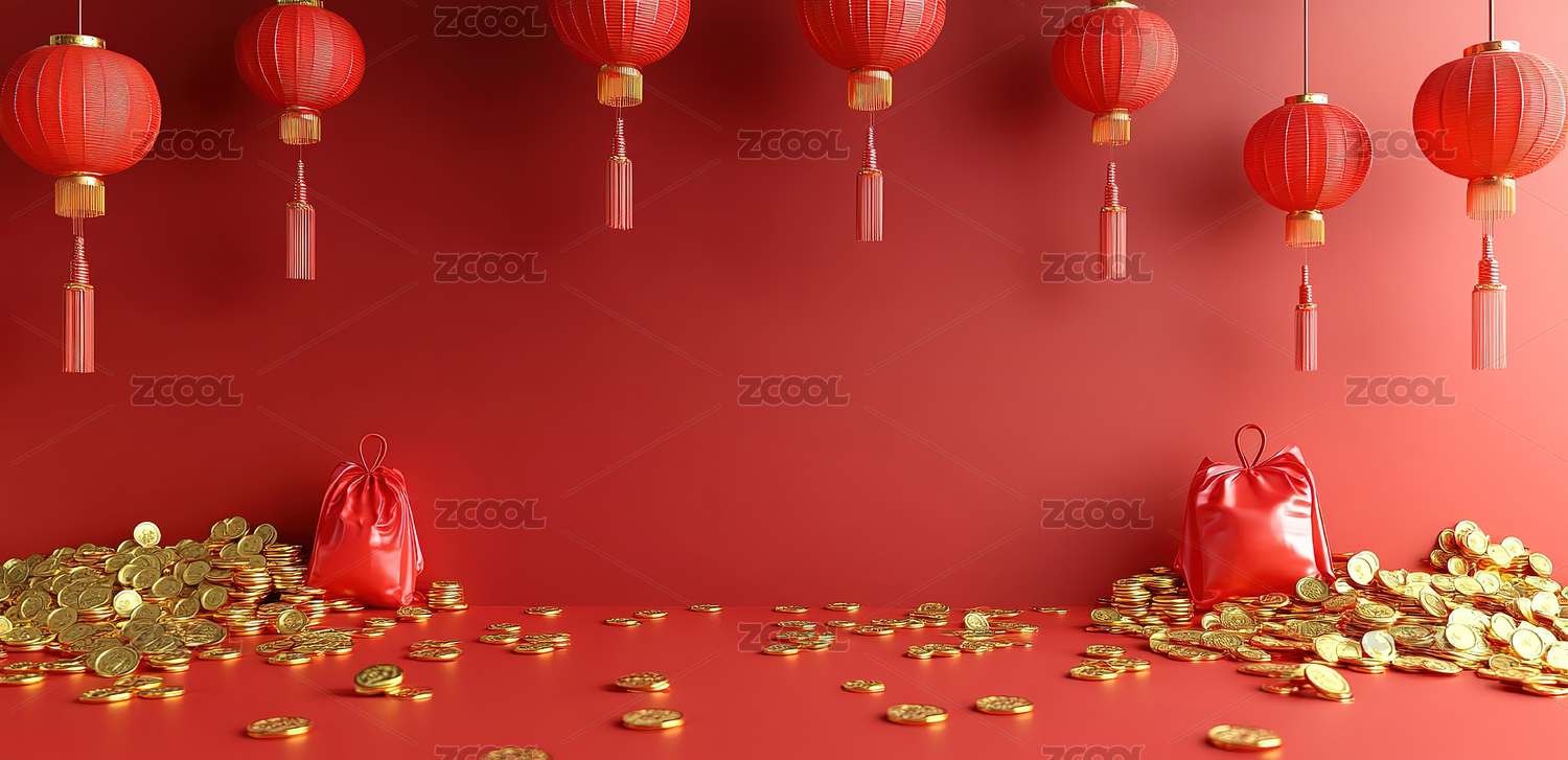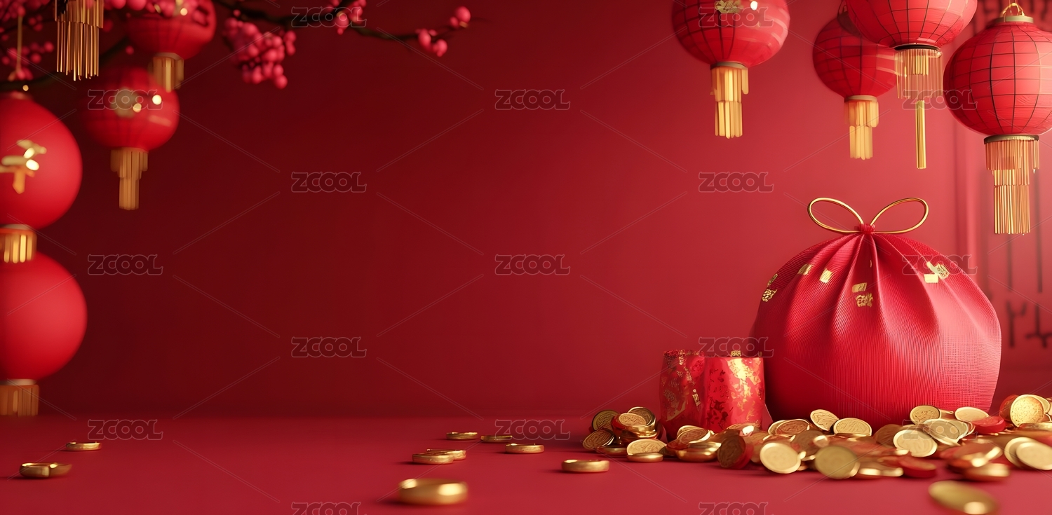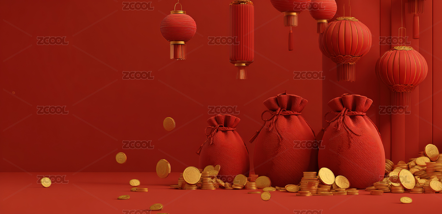 新年元旦氛围感金币钱袋背景