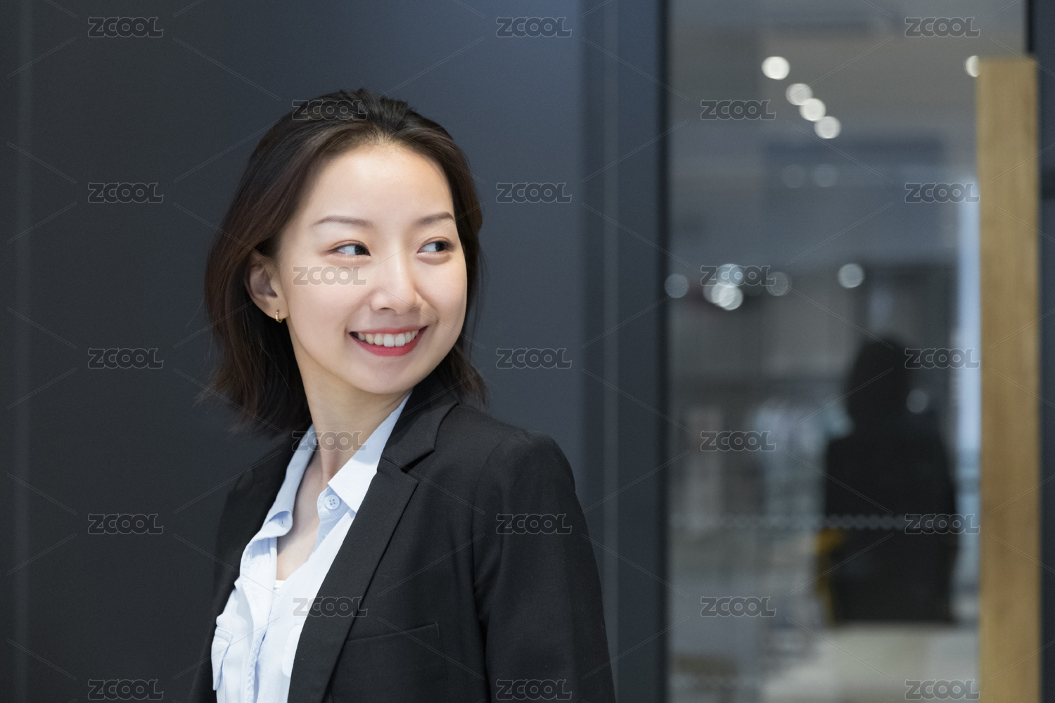 一名亚裔商务女士手臂环抱面带微笑看向镜头