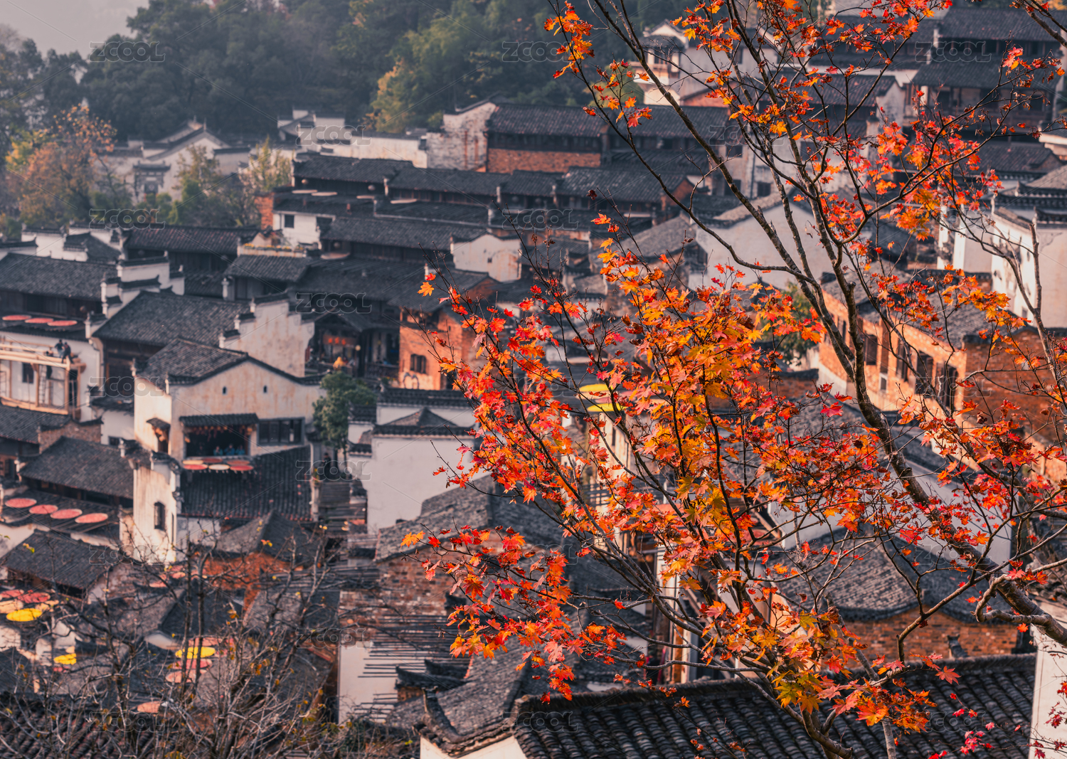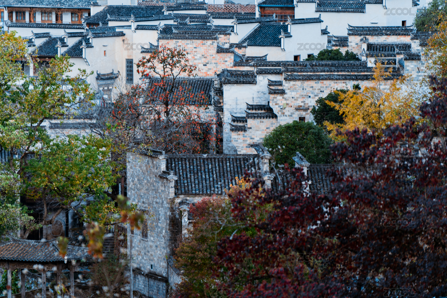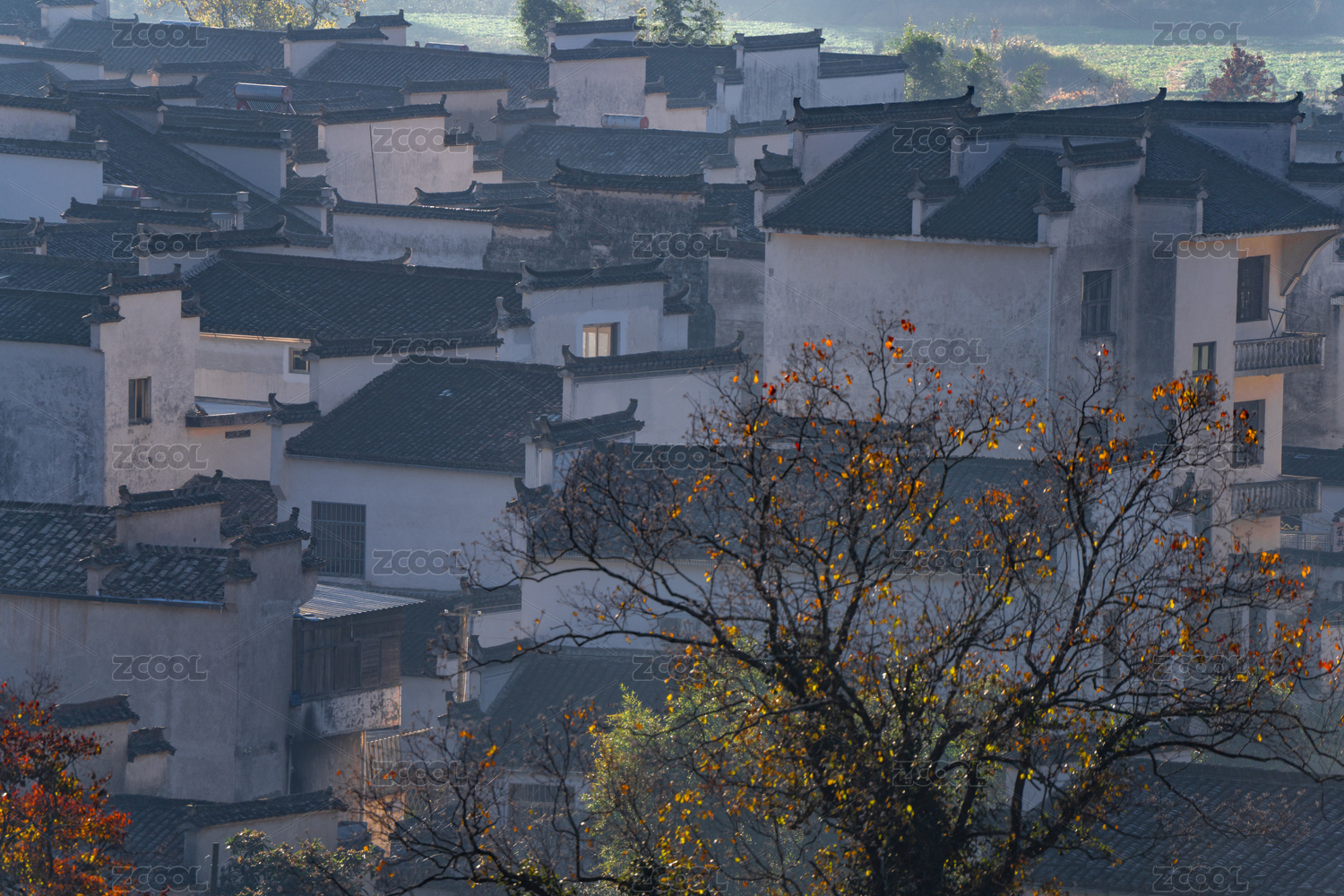 安徽徽州黄山黟县皖南徽派建筑秋色卢村村落