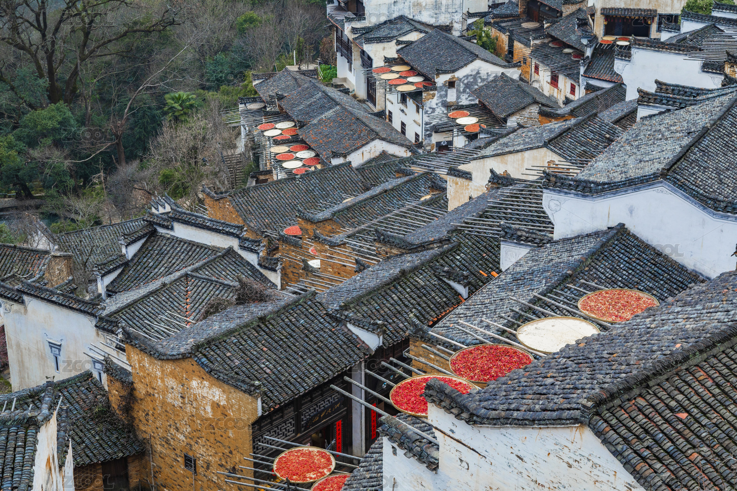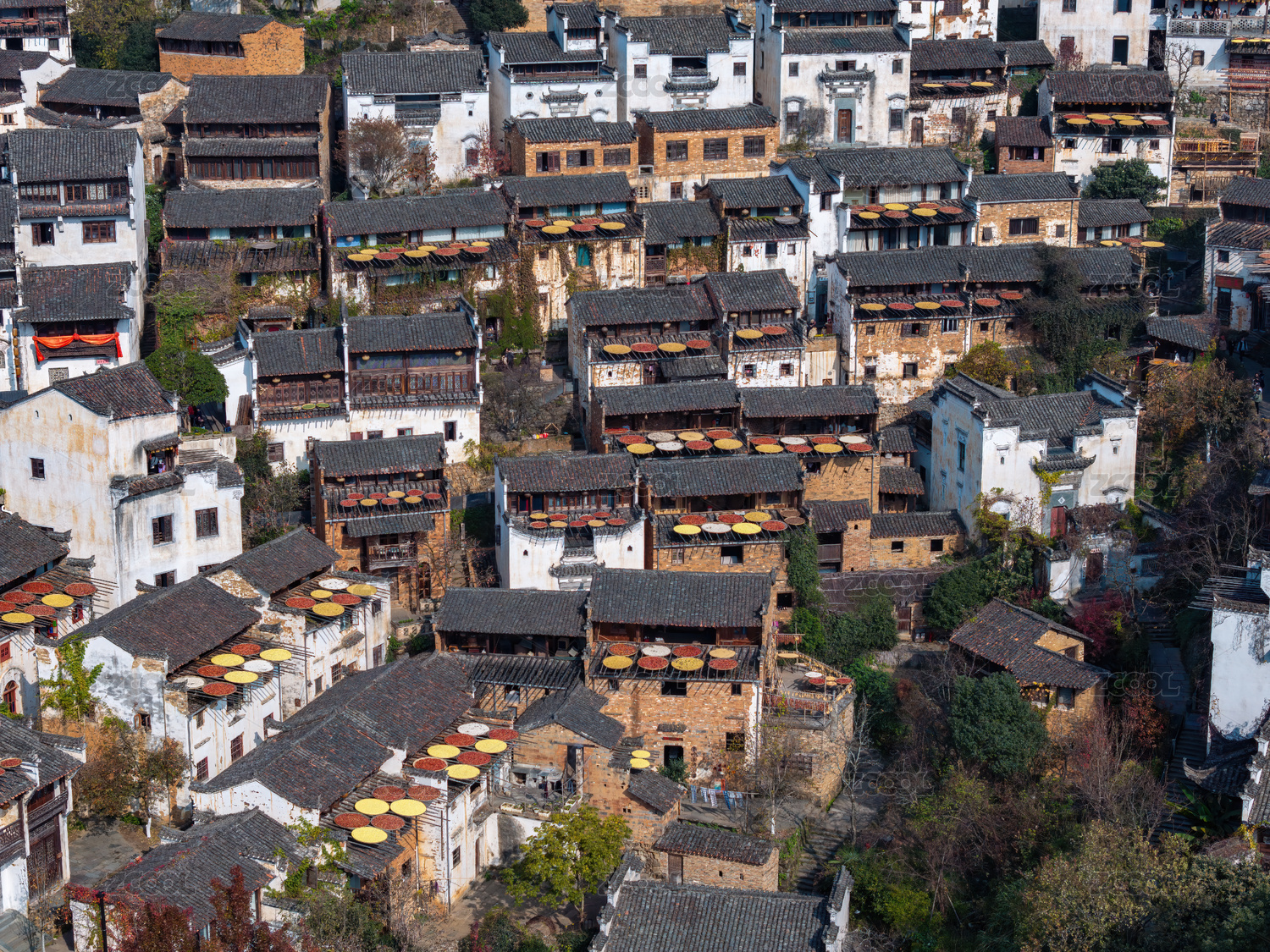 江西上饶婺源篁岭等地,徽宅秋天晒秋风景照
