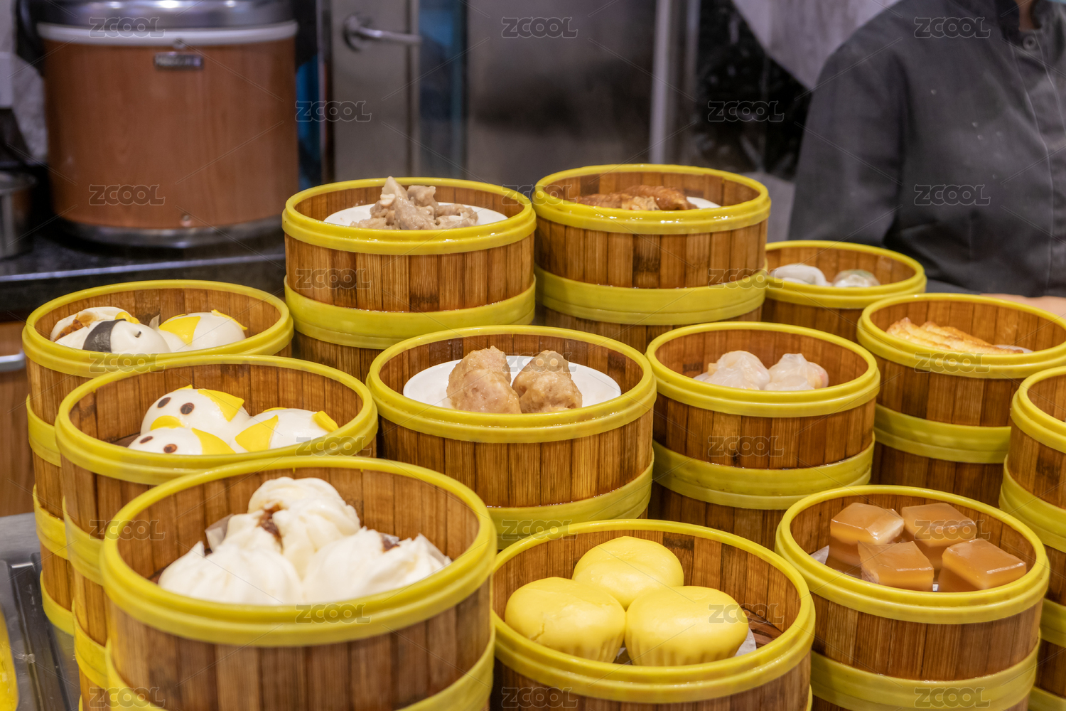 蒸笼里正在烹饪的中国传统小吃小笼包