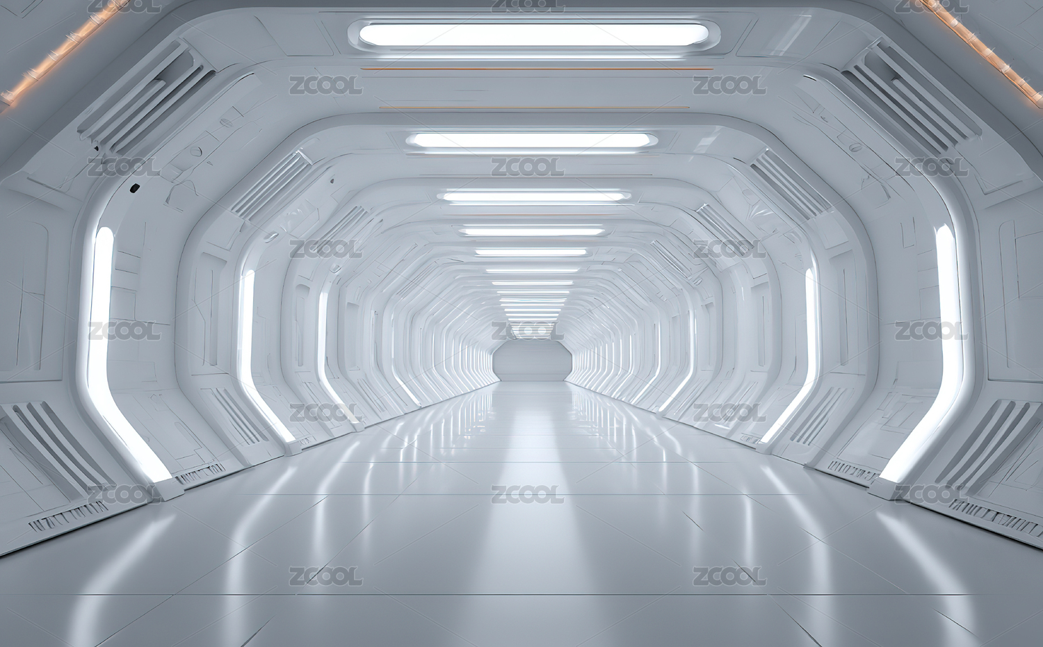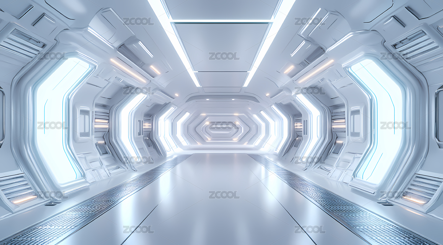 3D渲染科幻空间站宇宙飞船走廊概念插图