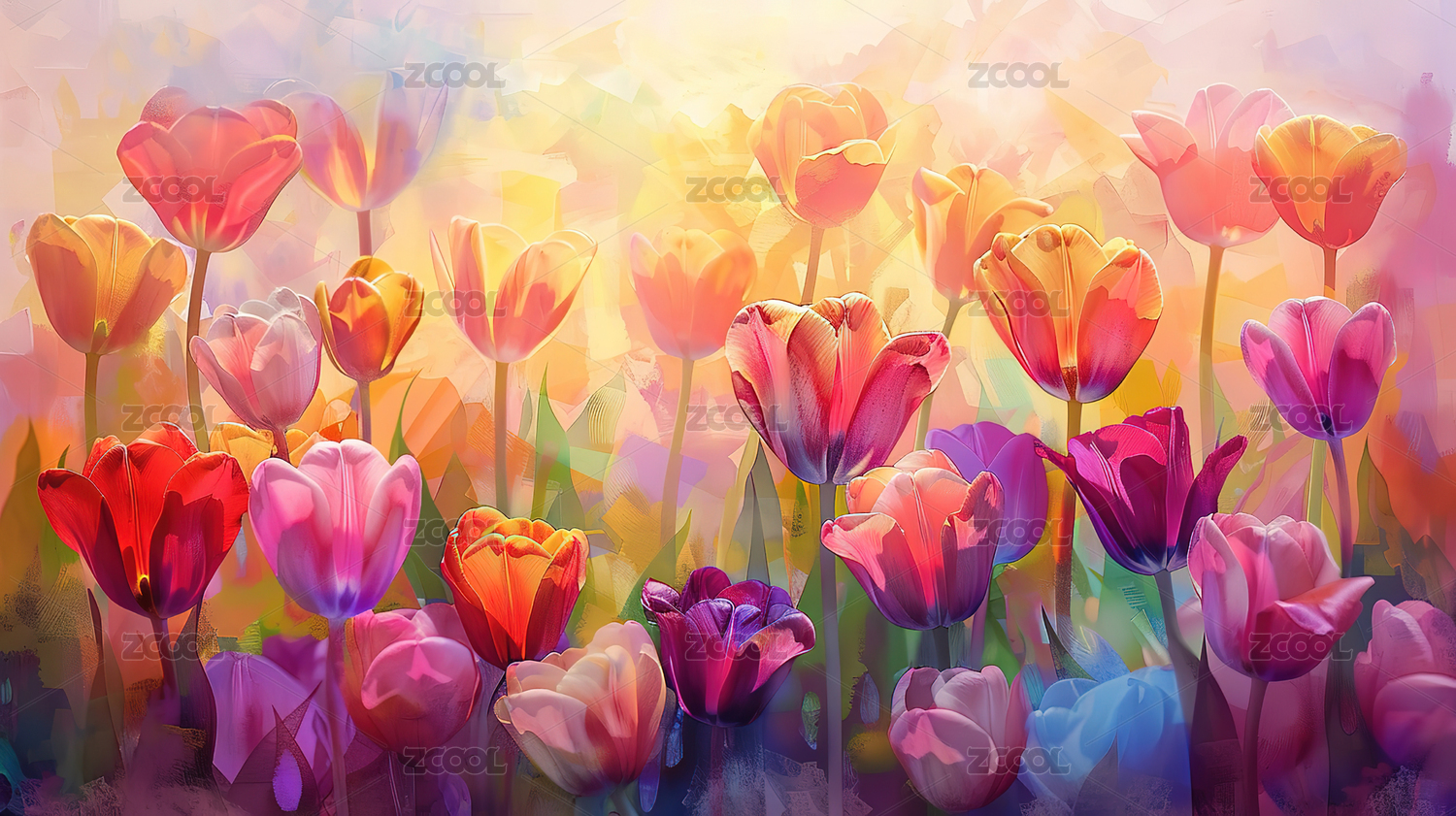 郁金香,花头,户外,天空,自然美,清新,花簇,白昼,AI数字艺术,花