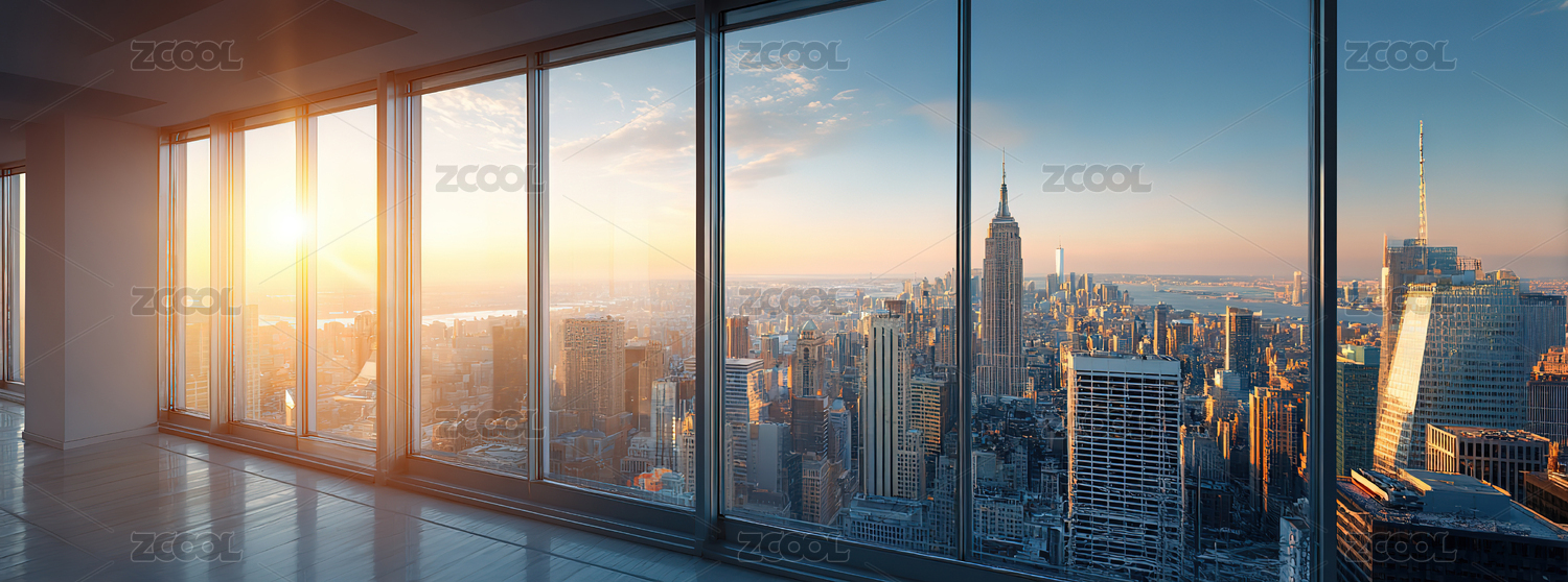 抽象插画风商业写字楼,城市天际线玻璃幕墙