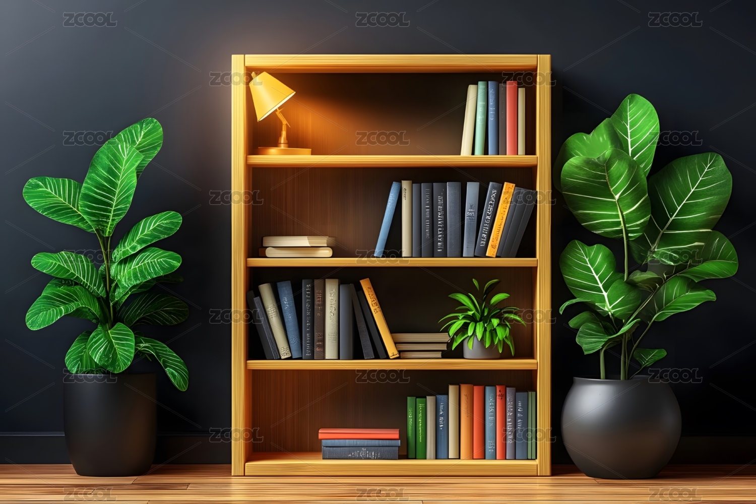 室内书架和植物