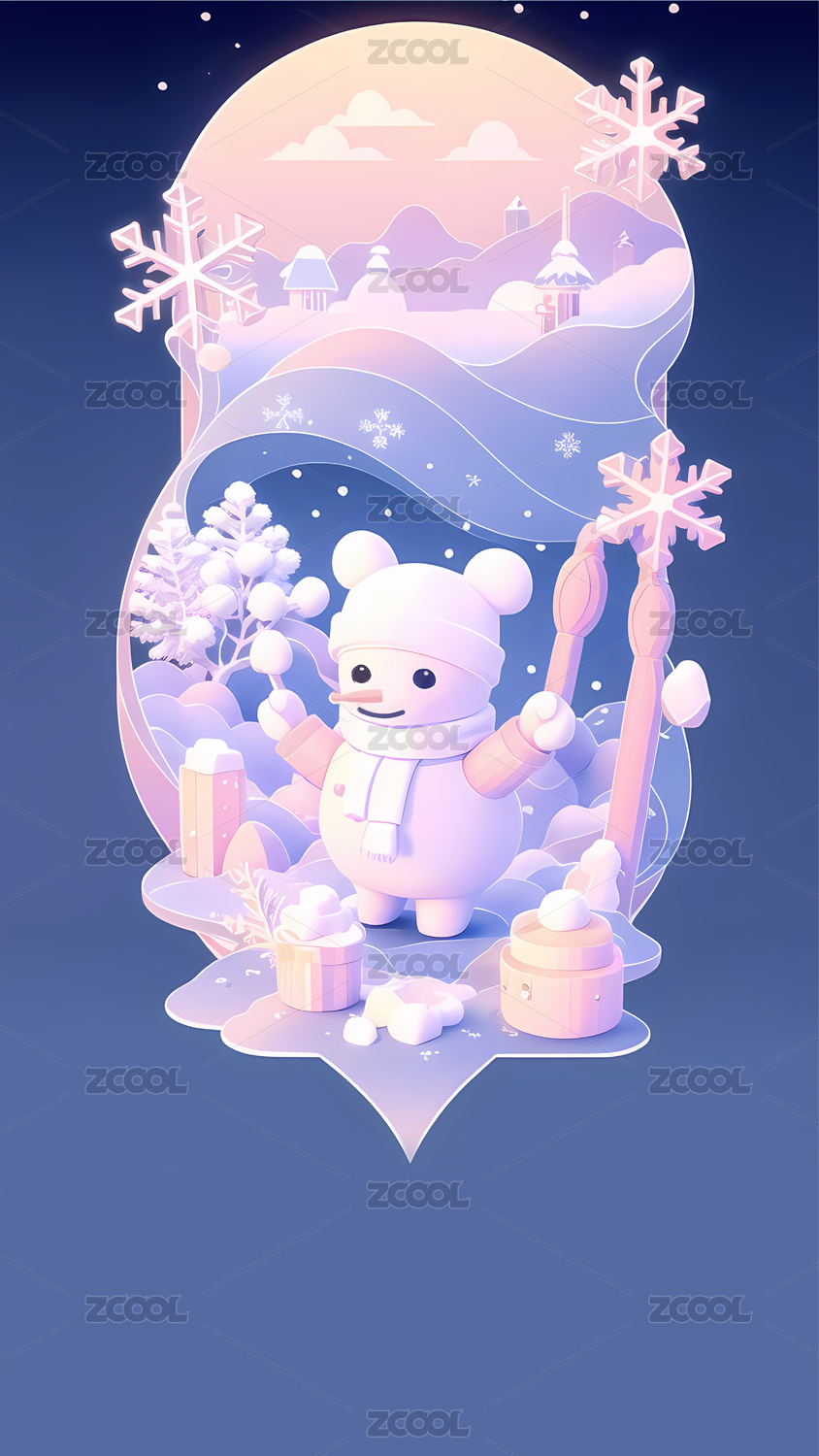 手绘温暖冬日雪景可爱小绵羊雪人儿童插画