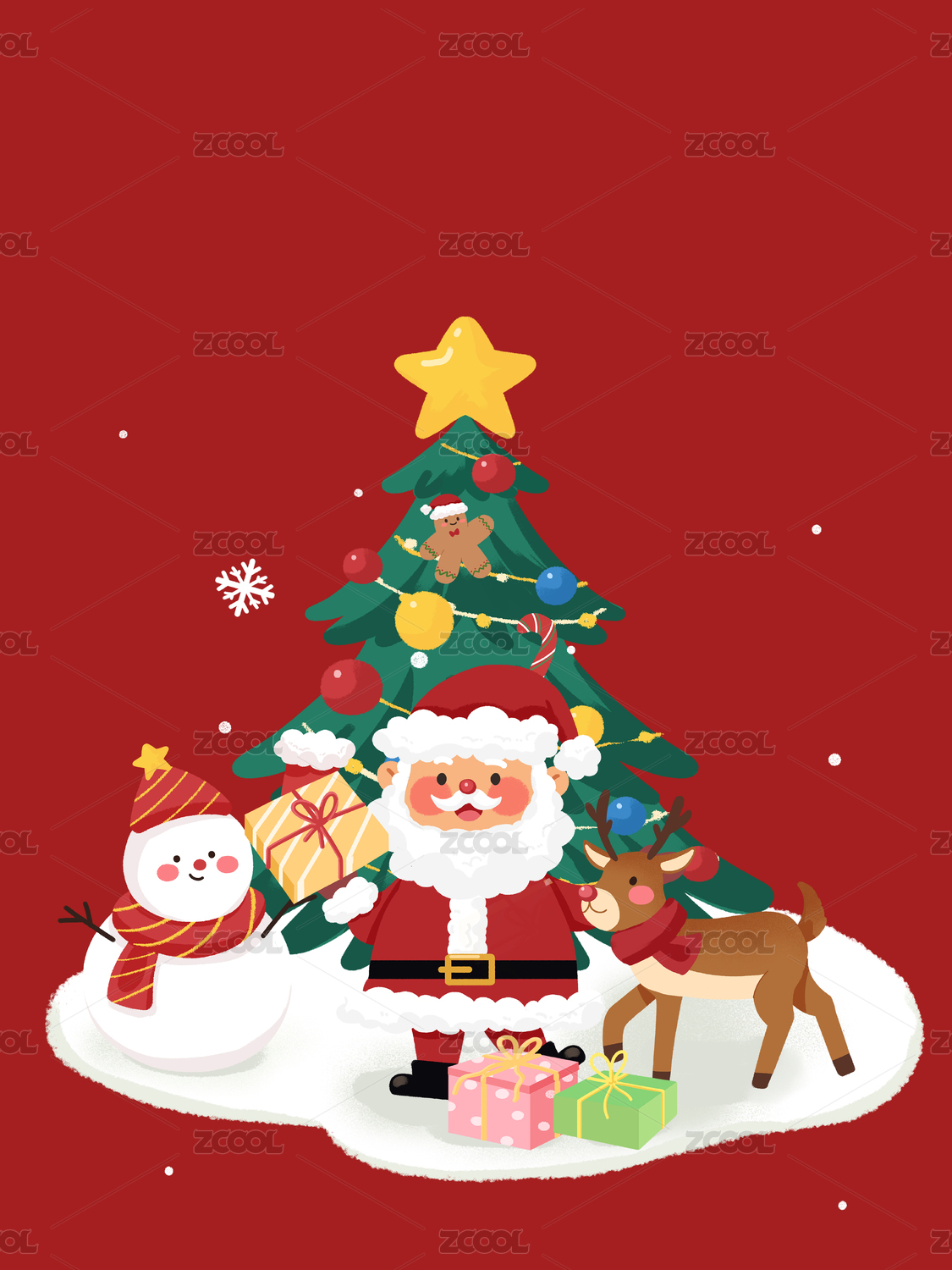 圣诞节快乐海报圣诞老人圣诞树雪人麋鹿