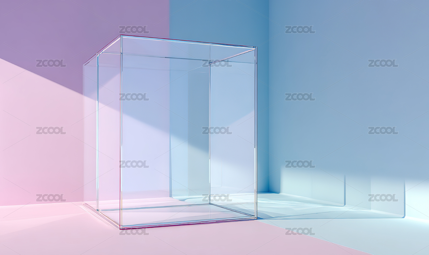 透明立方体置于彩色空间