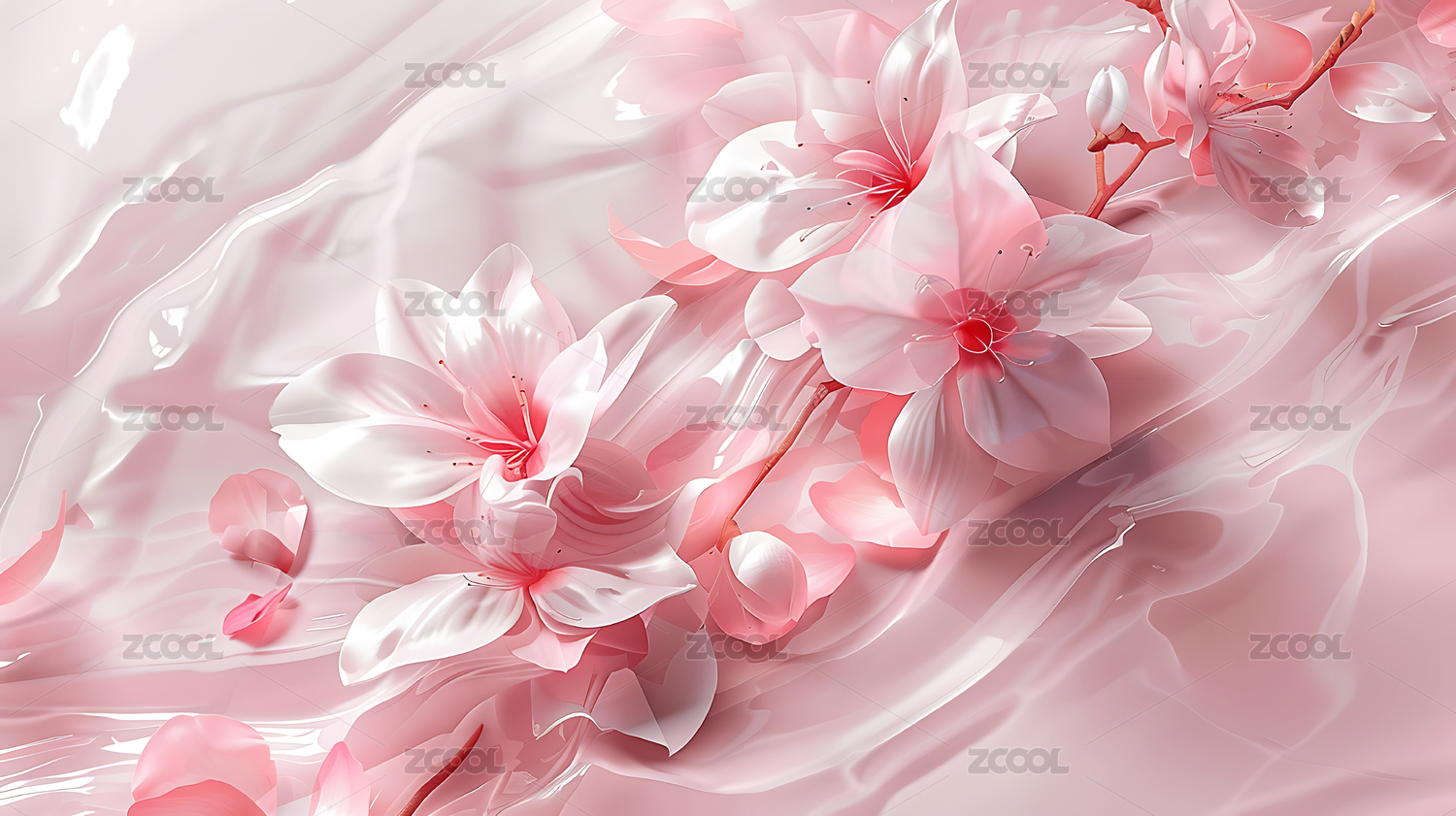 粉色樱花花瓣漂浮在粉色液体中