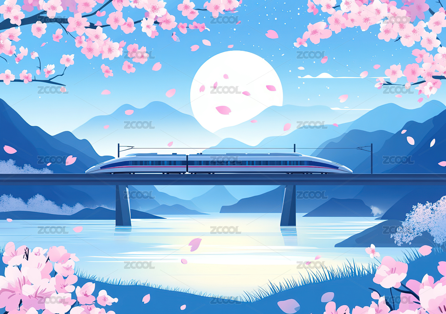 卡通手绘春运火车高铁动车春节返乡回家插画