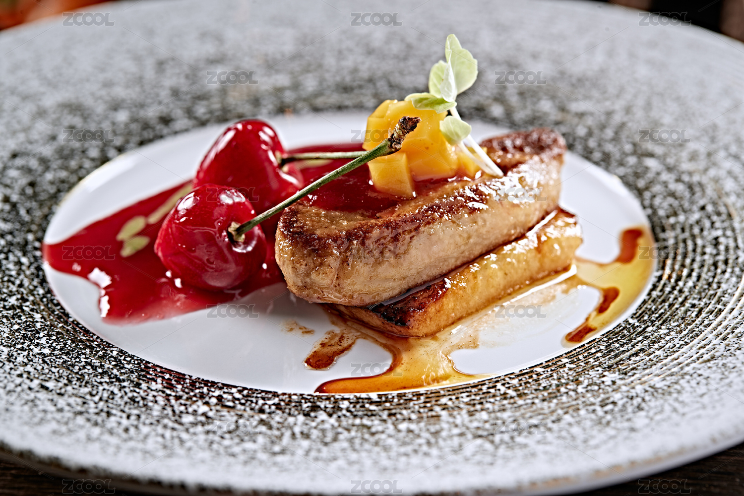 西餐盘里的法式煎鹅肝香煎鹅肝