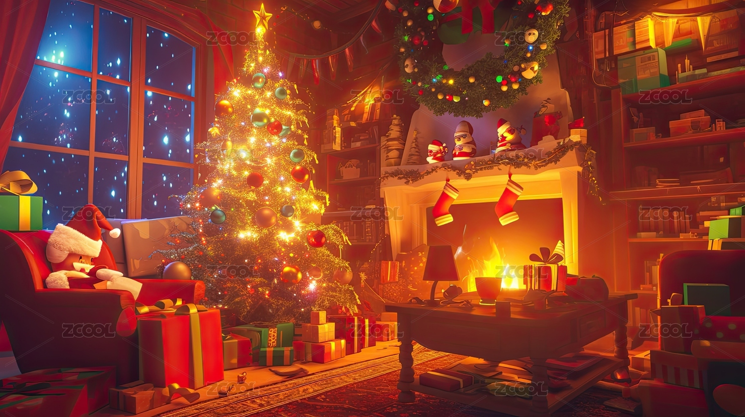 温馨圣诞夜室内装饰场景