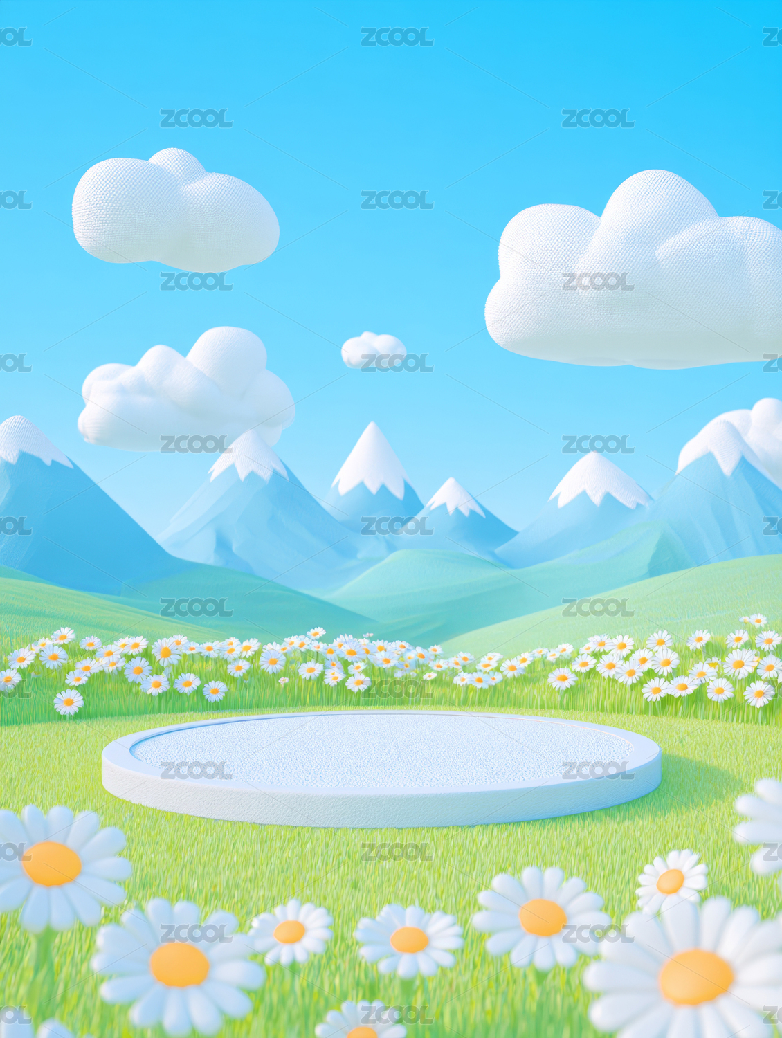 天空下草地花海中在展示台