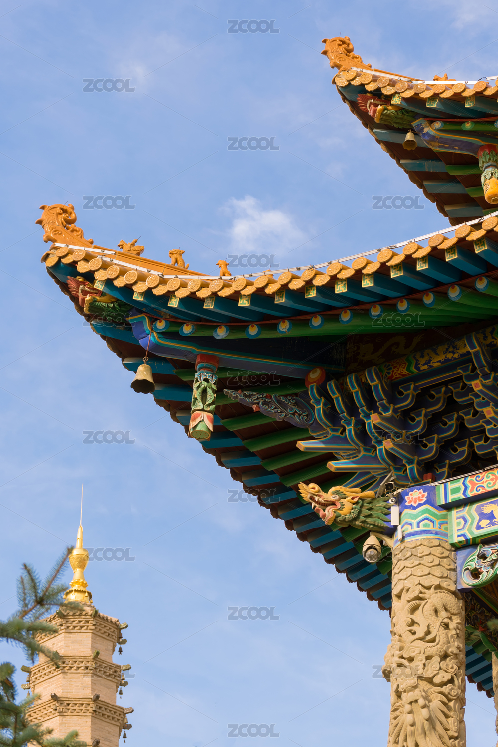 佛教佛寺建筑屋檐-长沙古开福寺