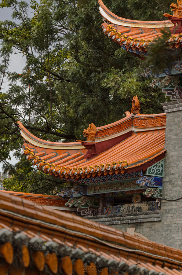 中国广东省广州仁能古寺建筑的屋脊