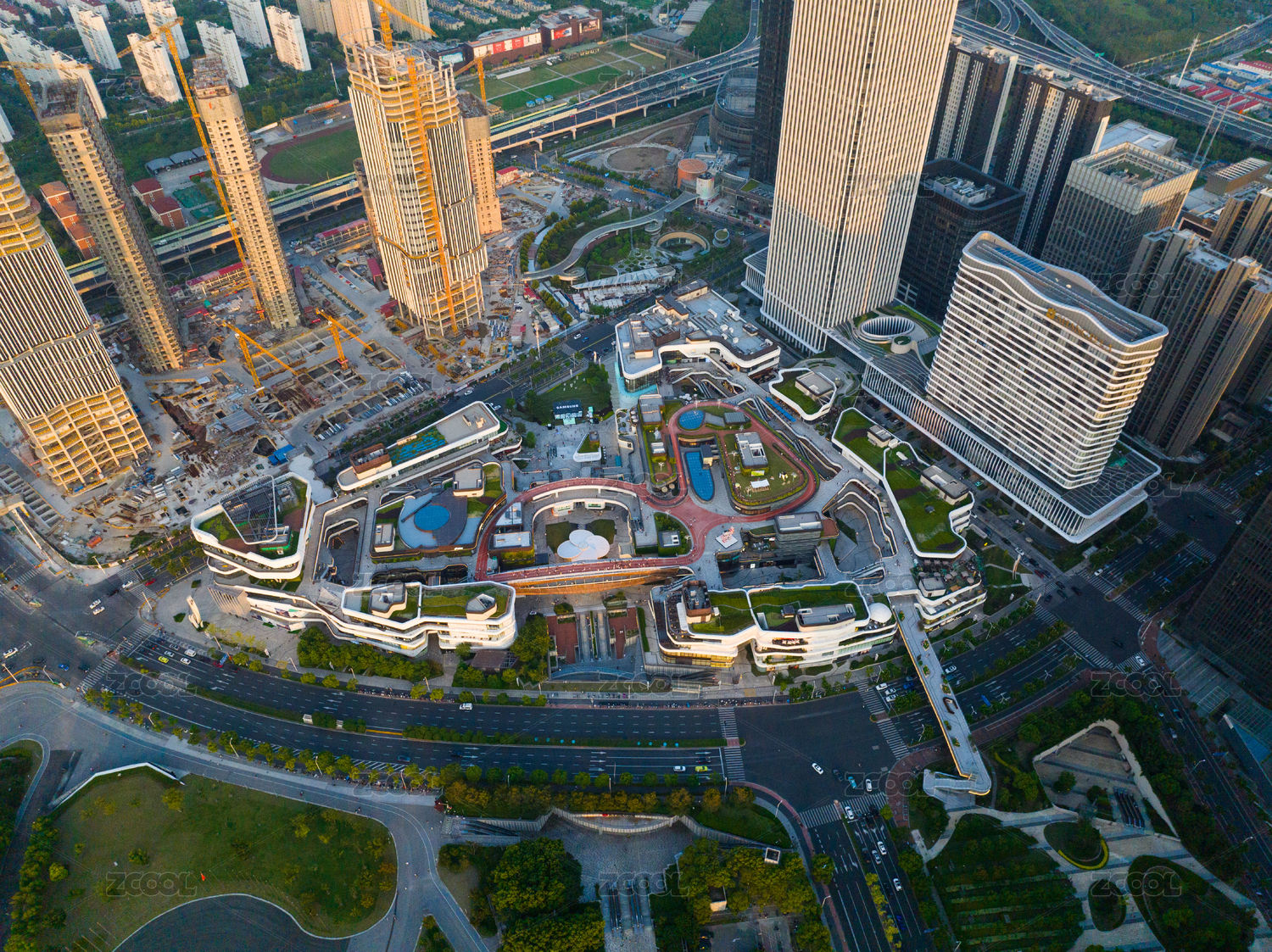 航拍河南郑州龙子湖智慧岛大厦爪子形状建筑