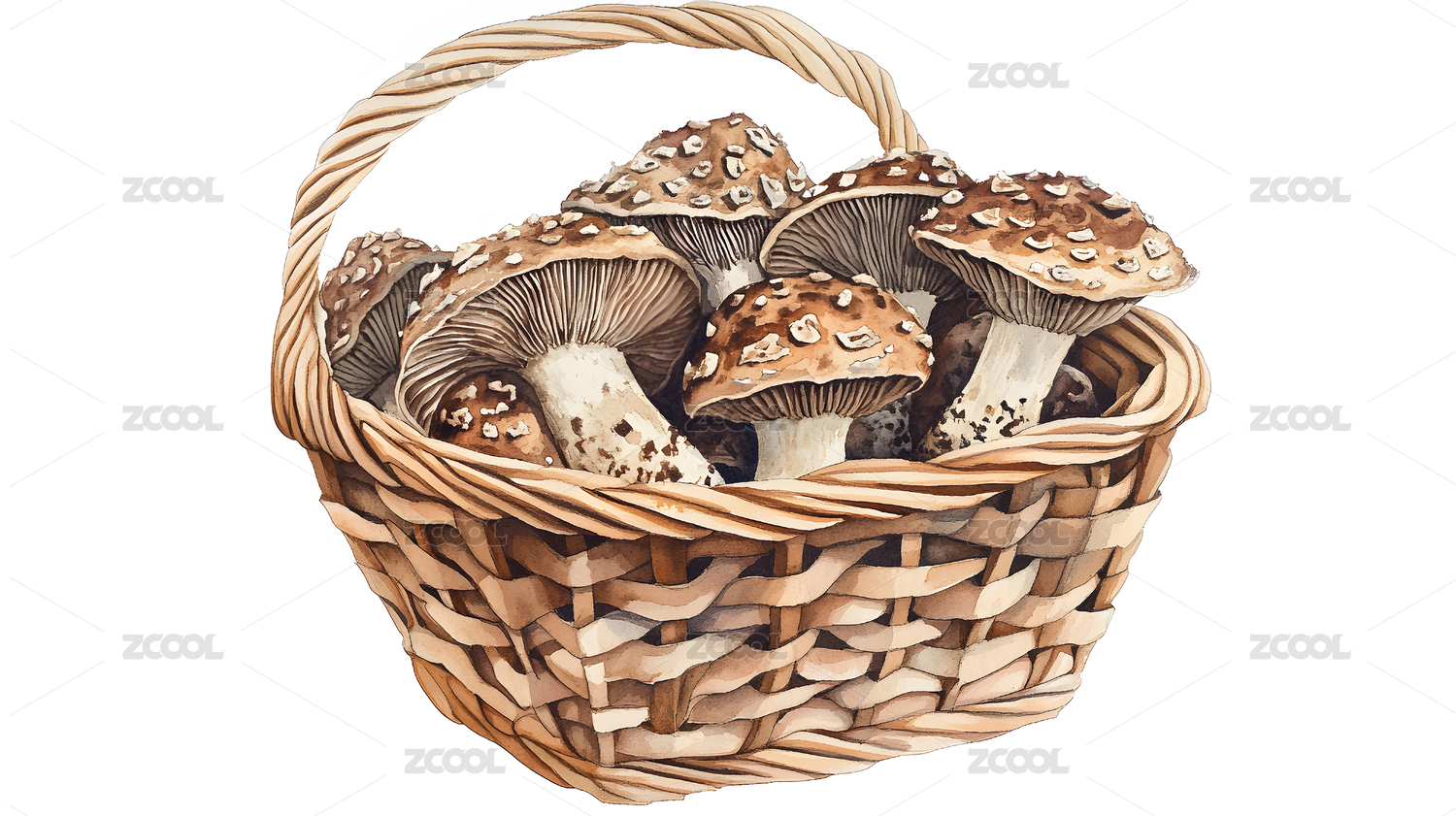 背景,壁纸,质感,创意,三维,立体,3D,插画,蘑菇,篮子