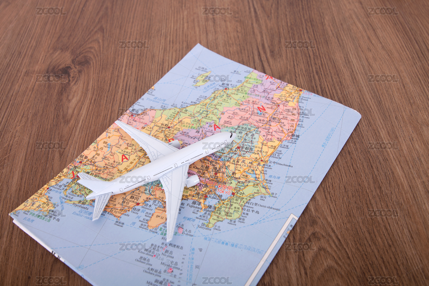 日本旅游地图和飞机模型及放大镜和其它相关出行工具