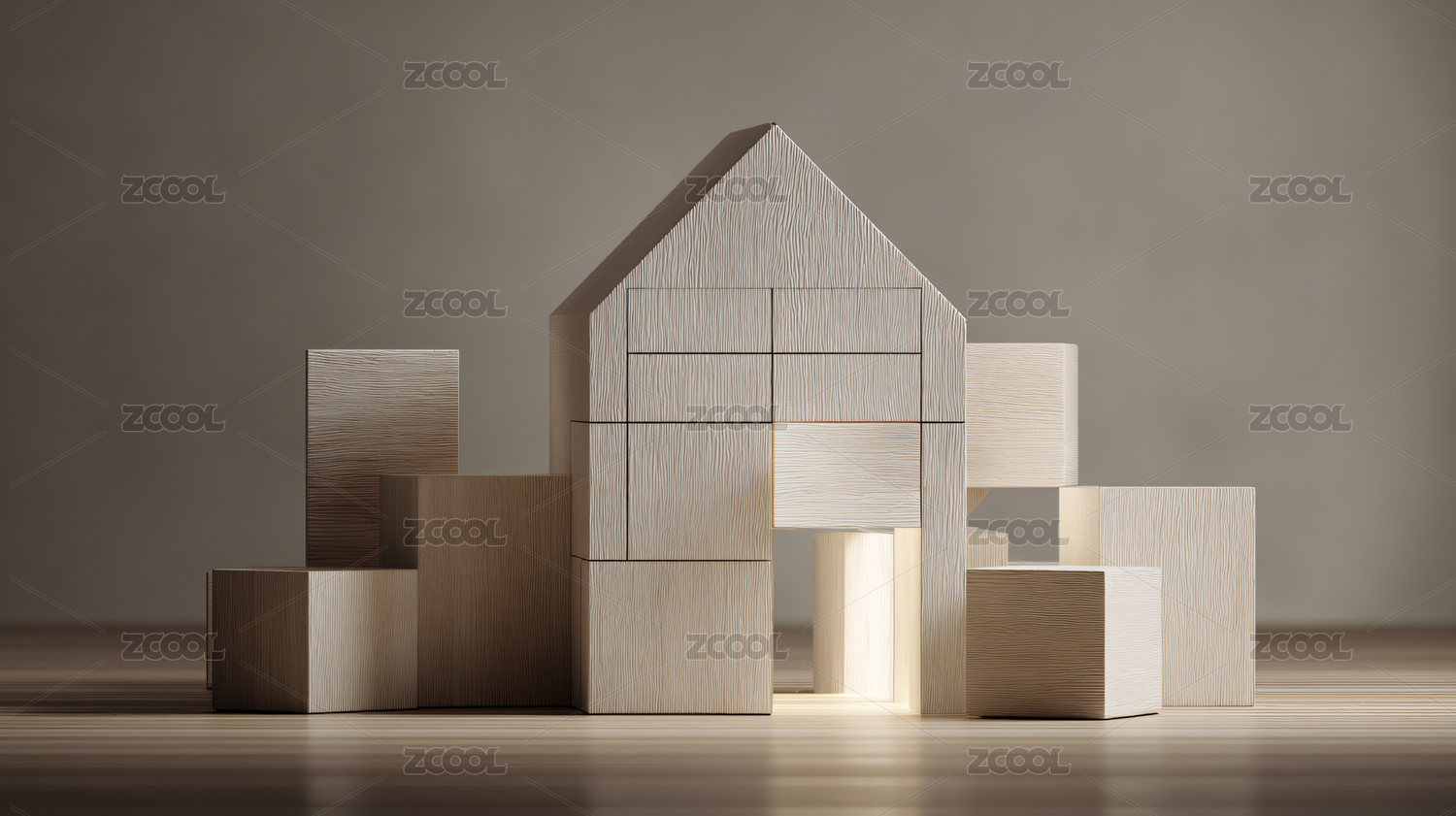 背景,现代,极简,艺术,积木,模型,房屋,木头,小屋,三维