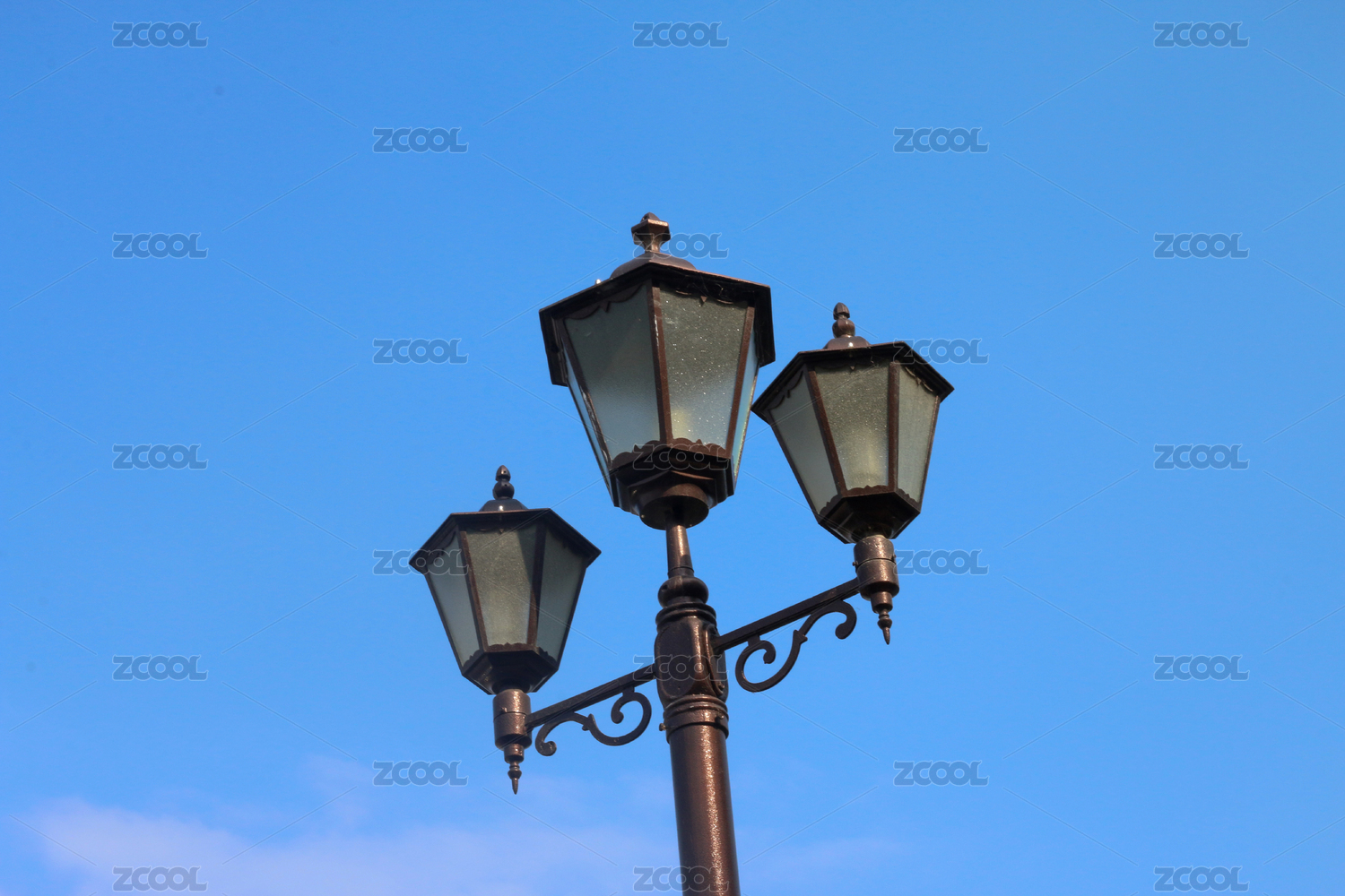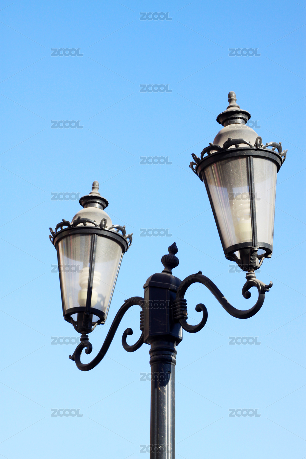 双头复古路灯与蓝天