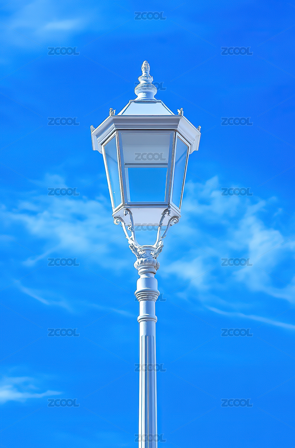 晴朗蓝天下的路灯
