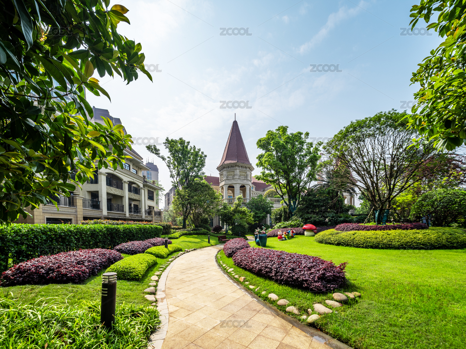 西式别墅外观环境植被