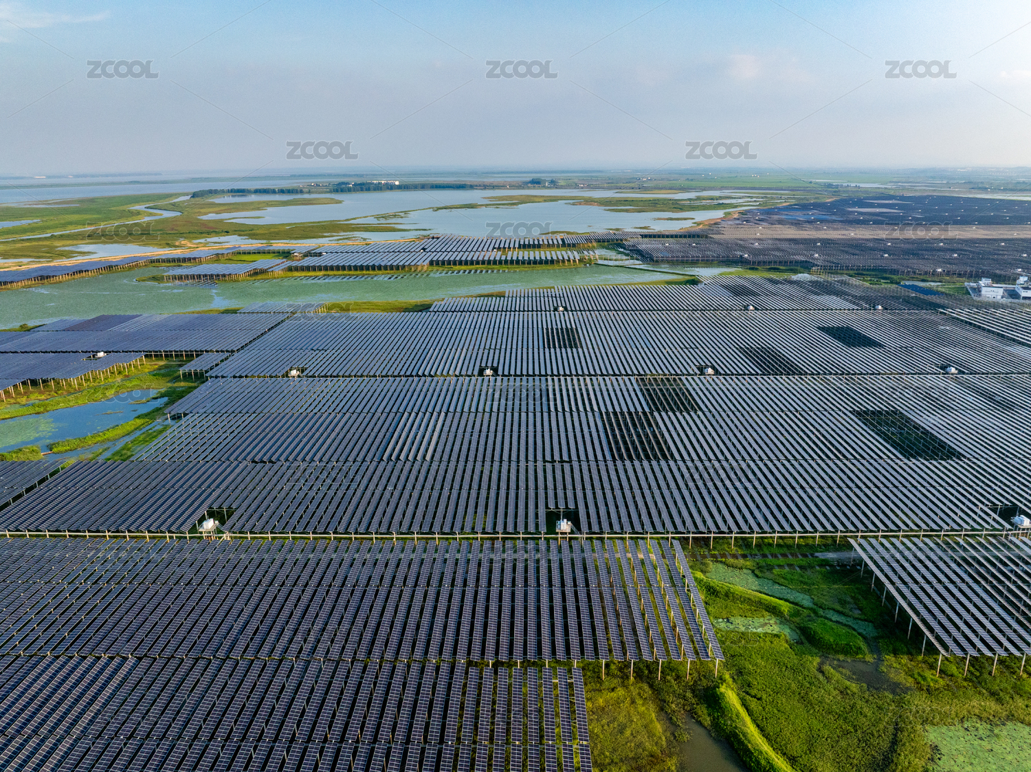 航拍湖南岳阳湘阴酬塘湖光伏电站