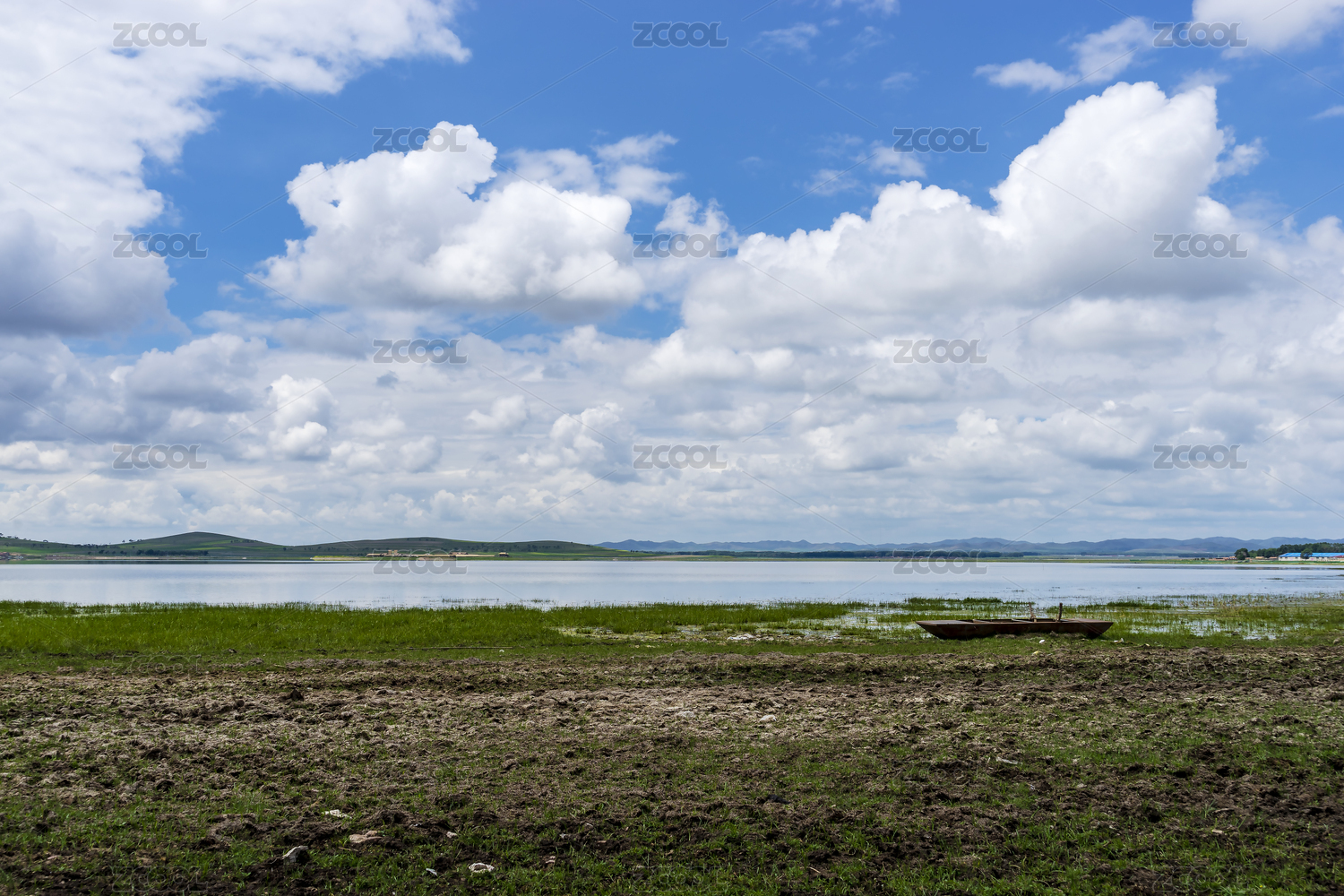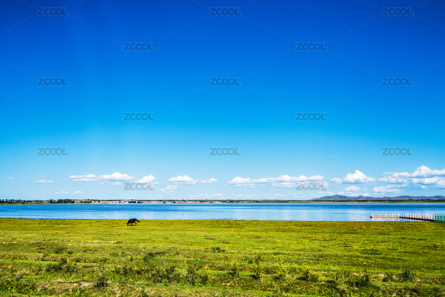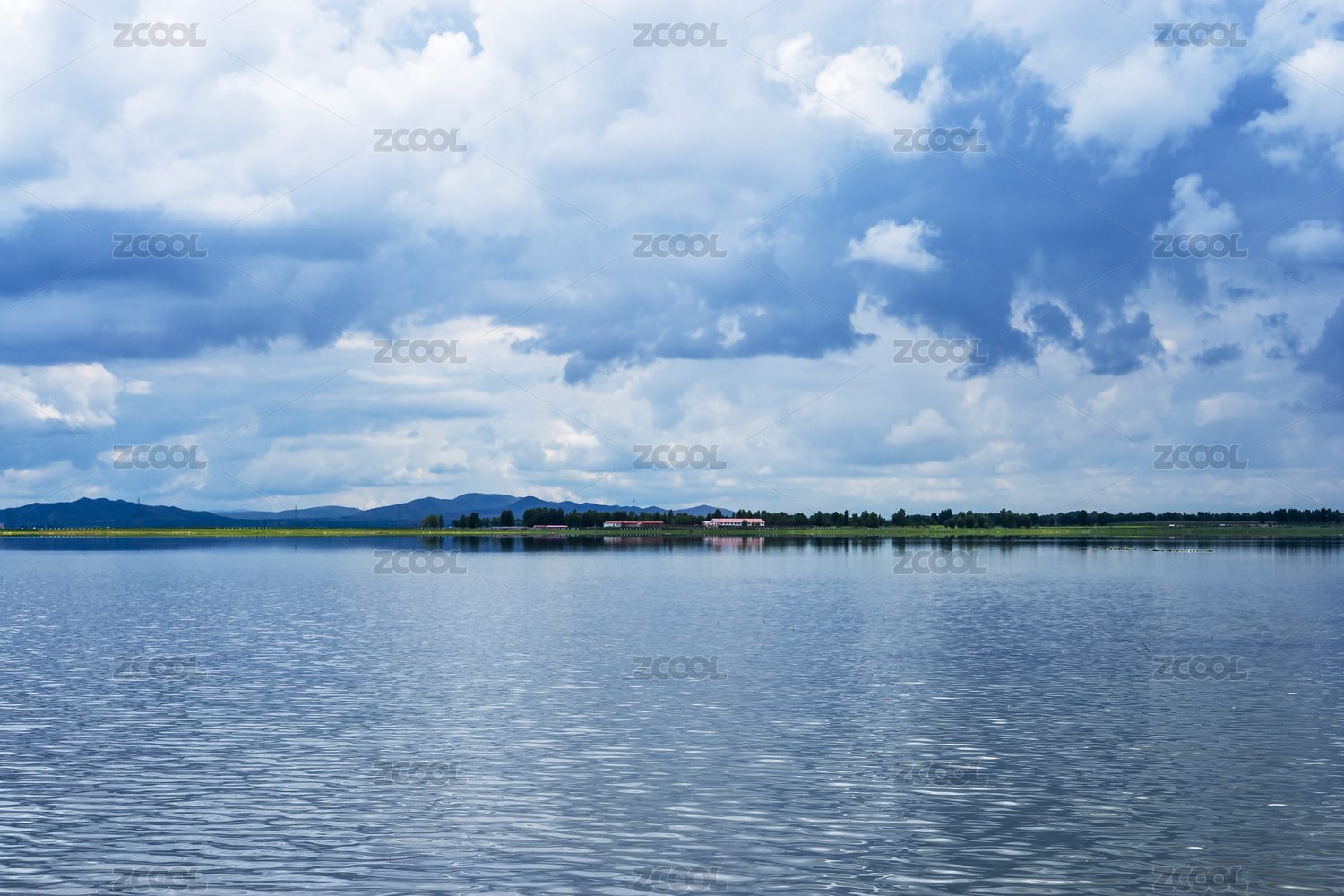 蓝天下河北张家口沽源天鹅湖夏季风光
