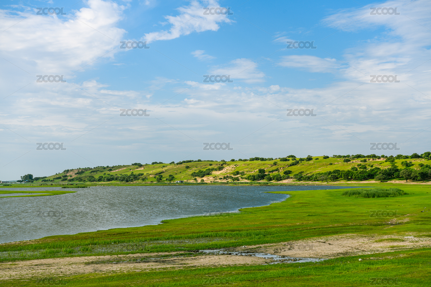 蓝天白云下河北省沽源闪电河风光