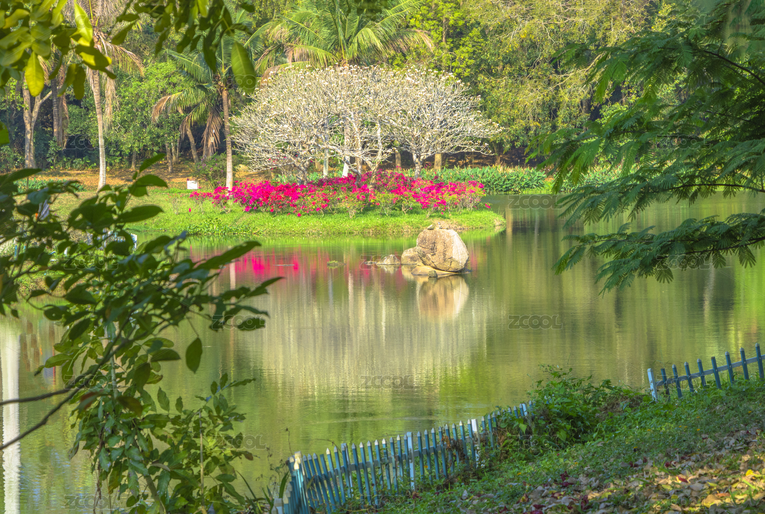 中国海南儋州热带植物园池塘小景