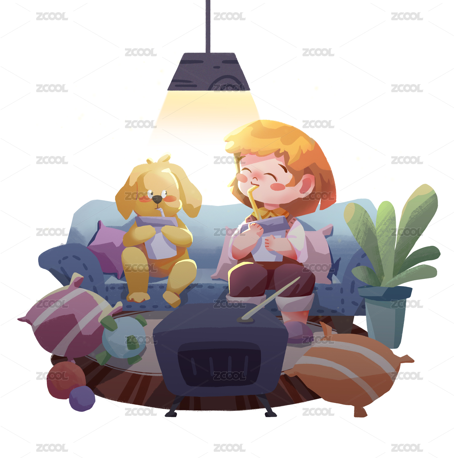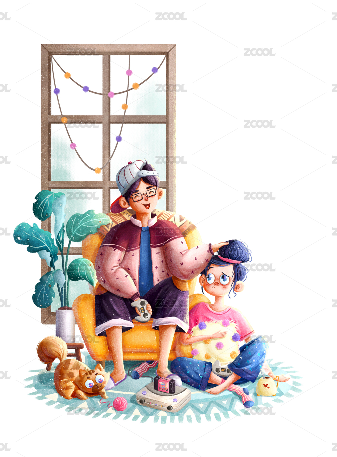 暑假宅家轻质感插画