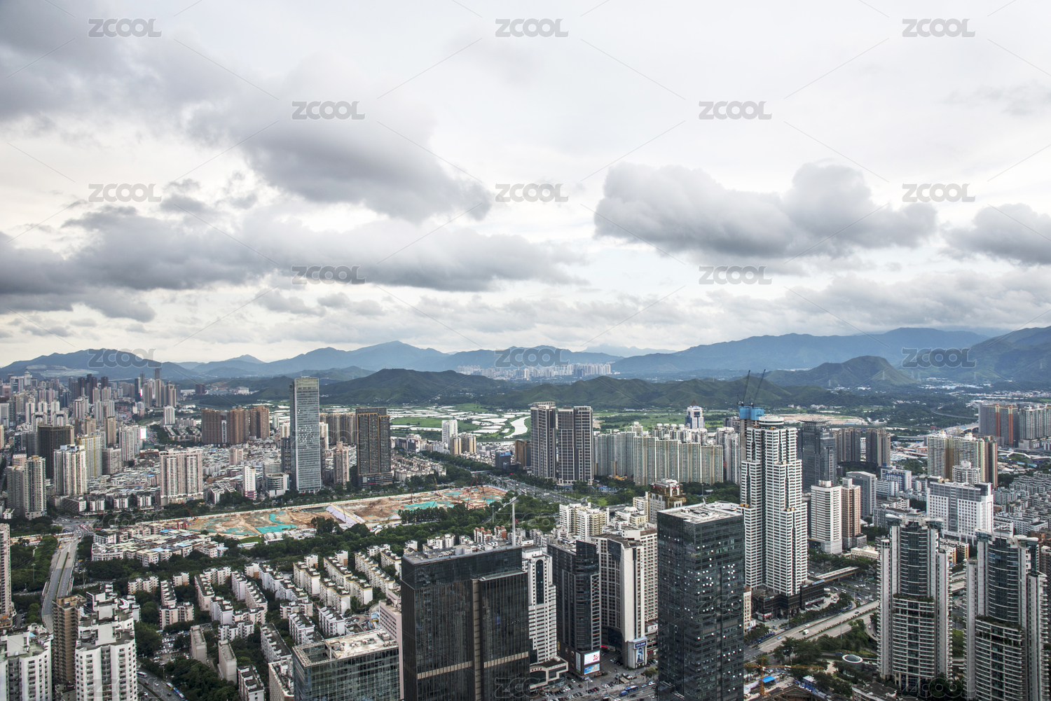 有云的中国深圳城市天际线建筑群高楼大厦风光