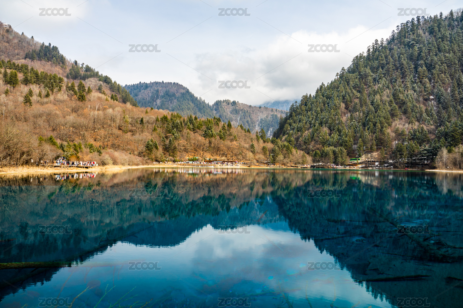 四川省阿坝九寨沟-蓝天下的湖光山色