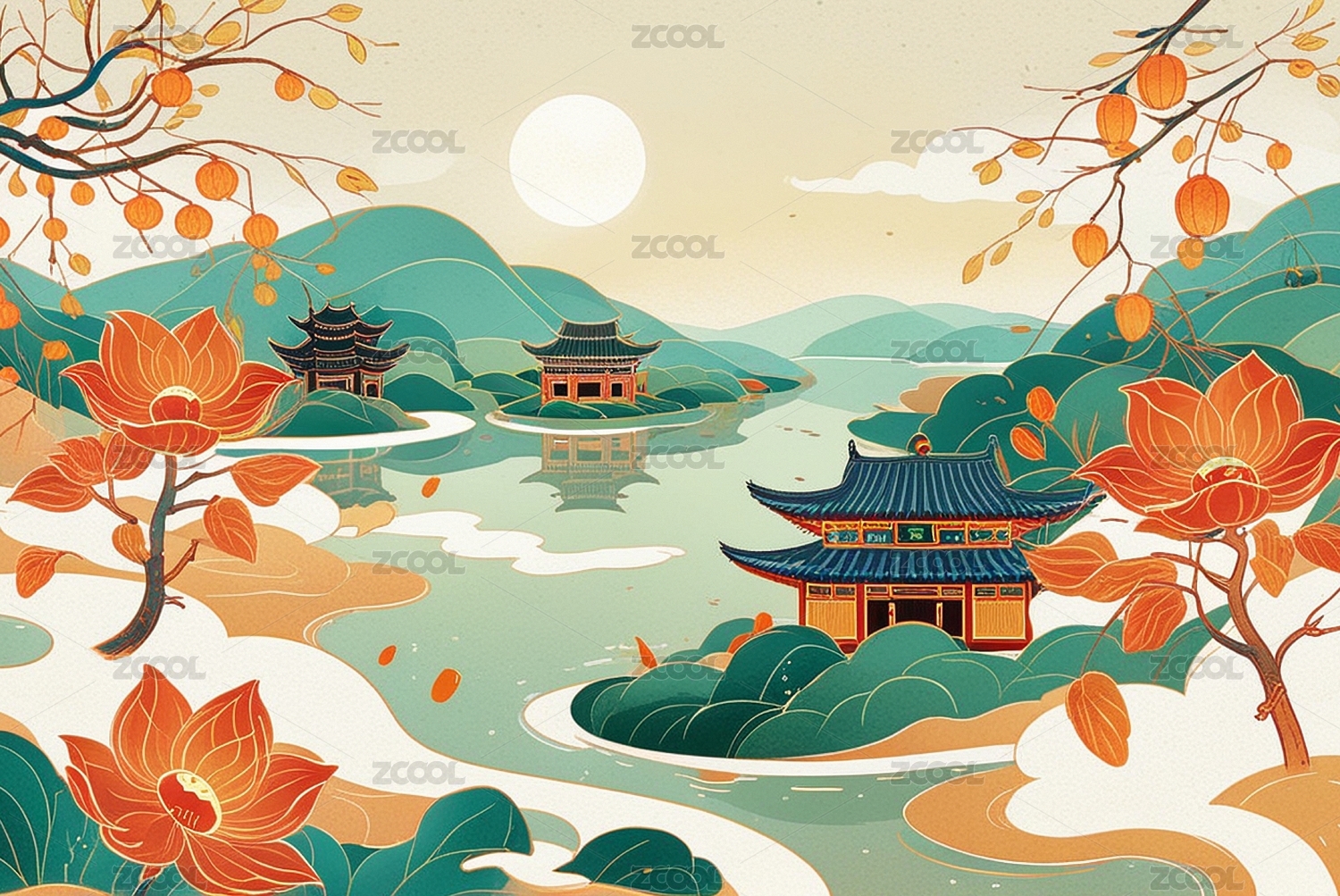 背景,艺术,插画,中国风,古风,AIGCFG,写意,七夕,中秋,节日