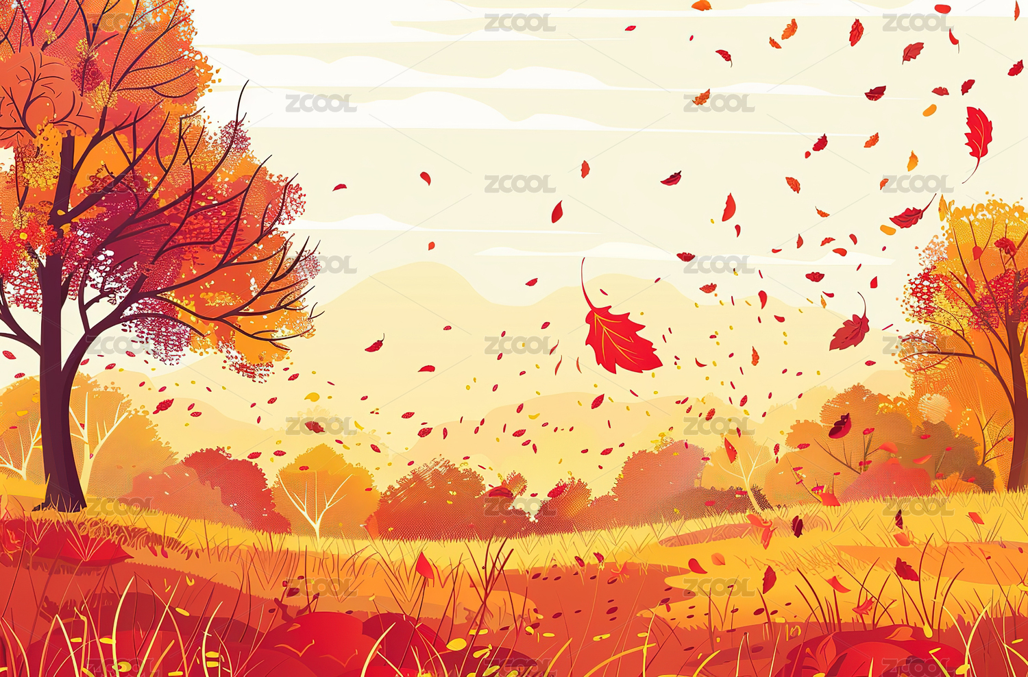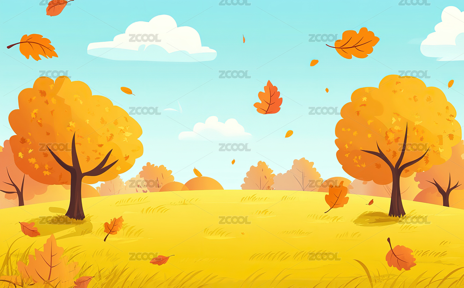 秋天秋季立秋秋分自然户外风景卡通漫画插画