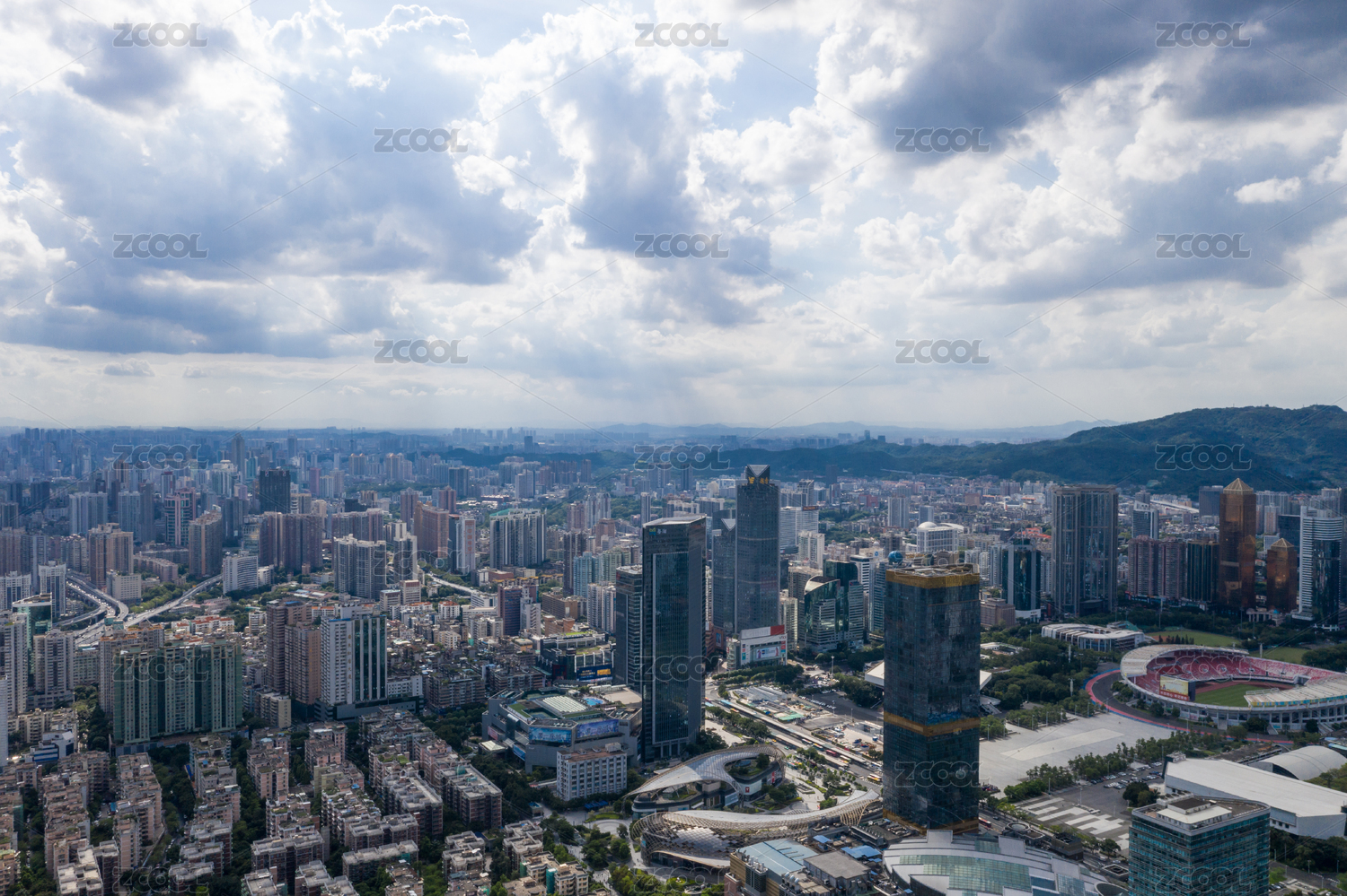 航拍视角,广州,珠江新城,无人,城市,都市风光,照亮,城市天际线,摩天大楼,高视角