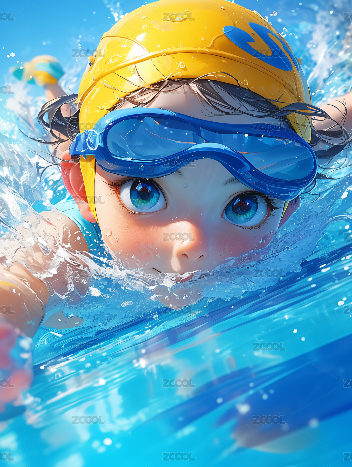 q版3d卡通游泳男孩