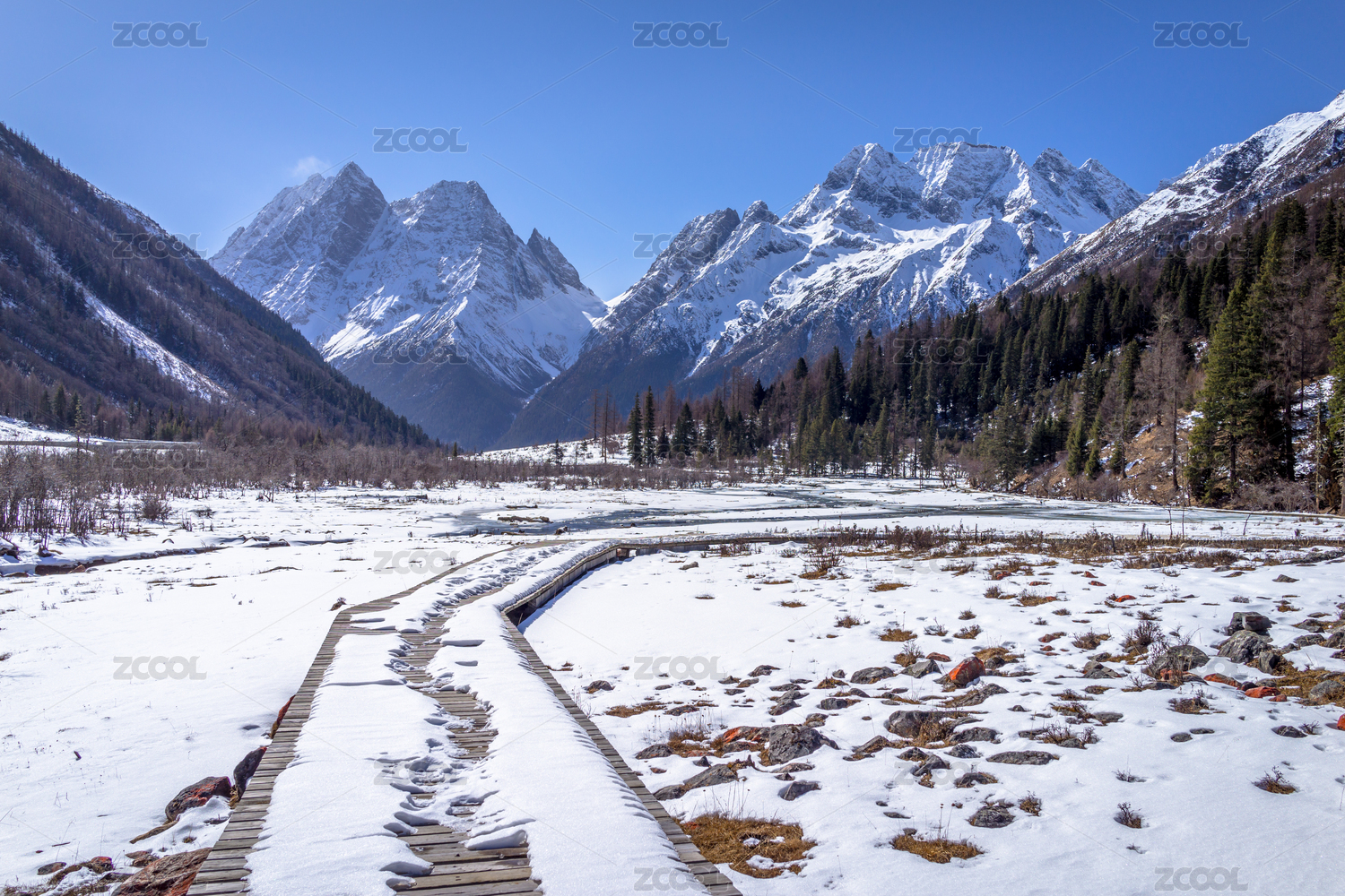 四川阿坝四姑娘山双桥沟景区冬季风光