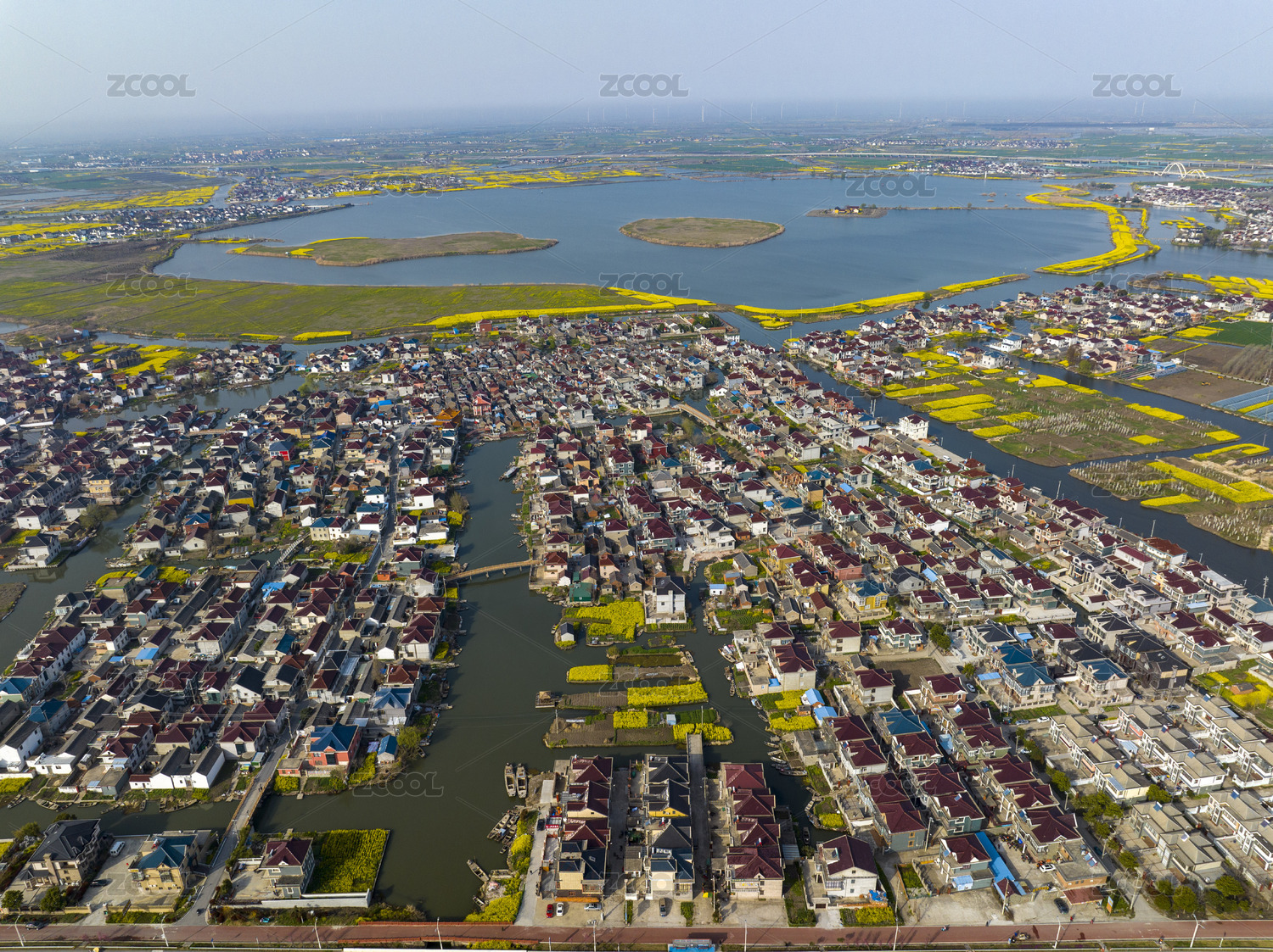 航拍花落后的千岛菜花风景区 绿里透黄别有一番风味