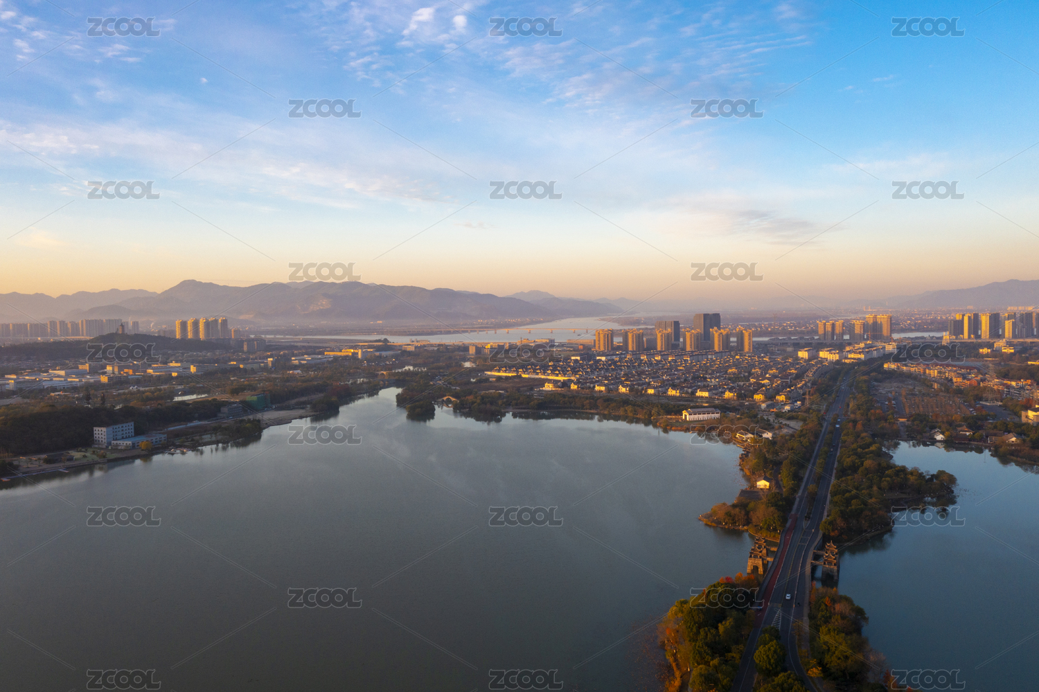浙江省杭州市湘湖晨曦航拍