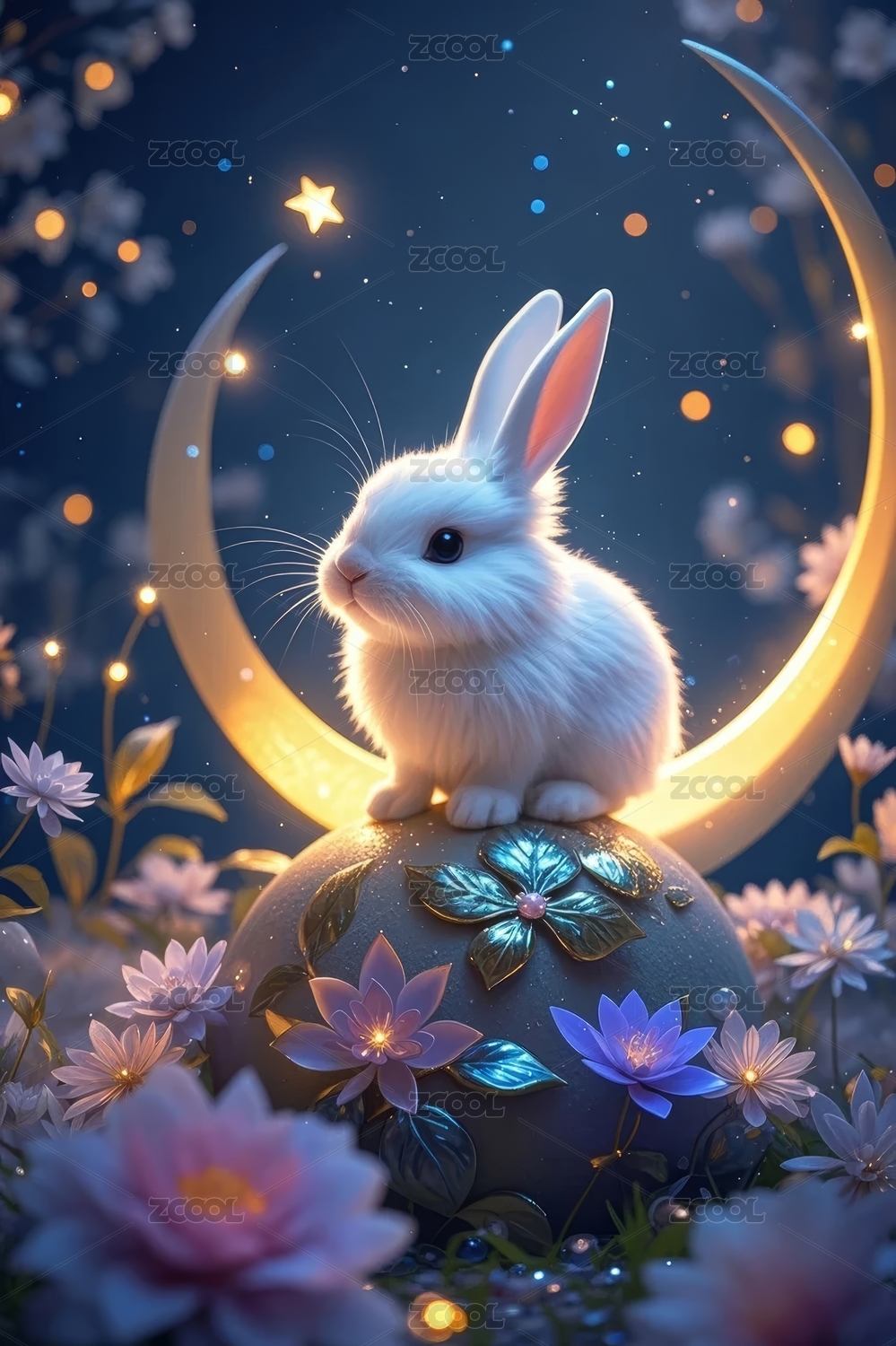 粉色兔子可爱唯美野生动物3D卡通插画壁纸