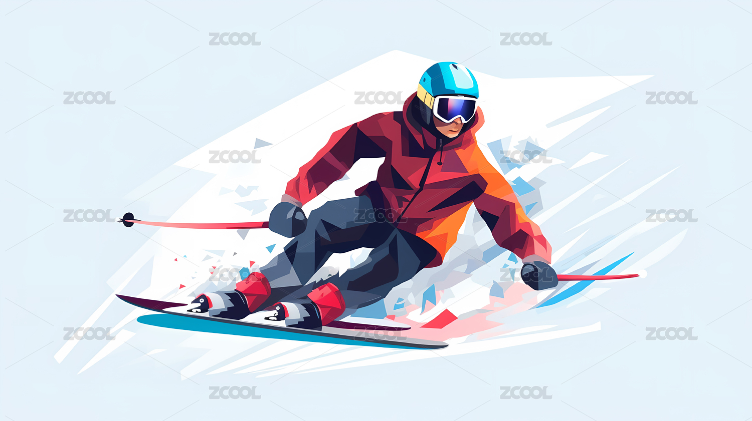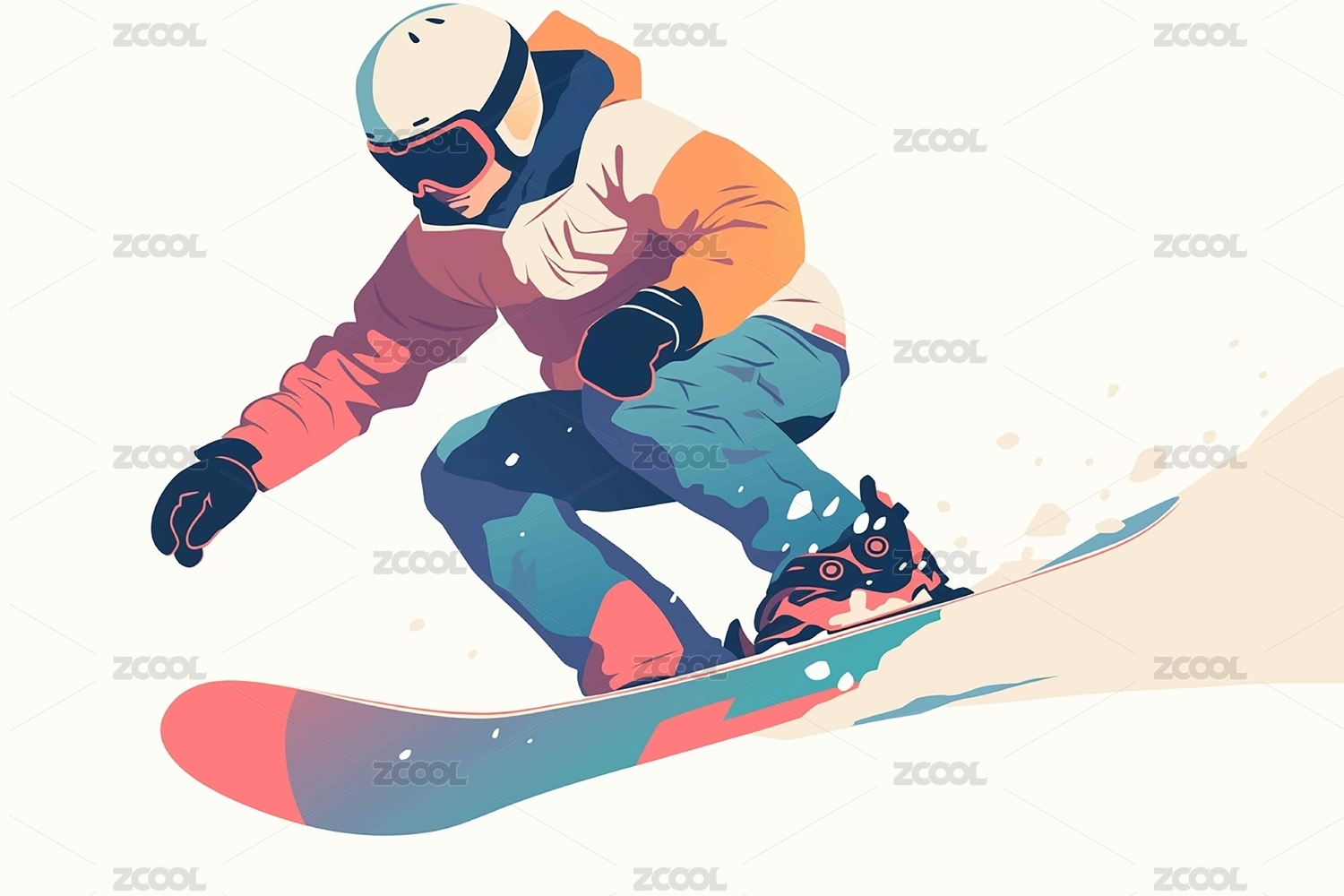 运动员,滑雪,运动,滑雪板,激烈,动作,扁平,插画