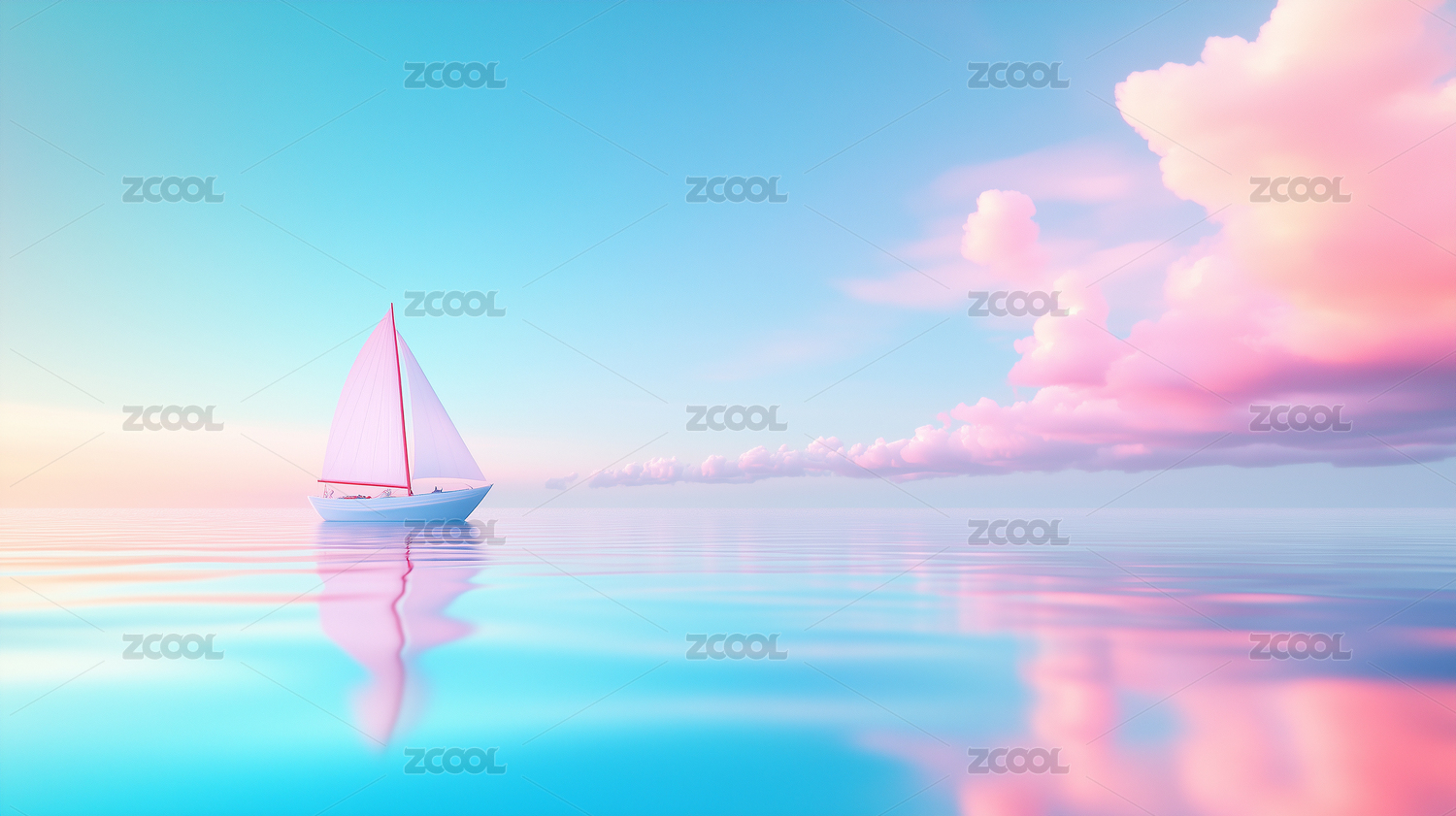 白色帆船在粉色水面上航行